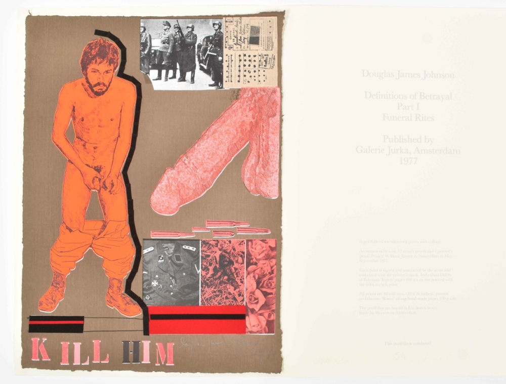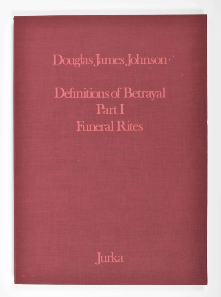 Part 1 Funeral Rites. Amsterdam, Galerie Jurka, 1977. Lim. ed. of 80 copies. Text sheets and 10 signed and numbered screen print collages. Cloth portfolio, 73 x 53 cm.