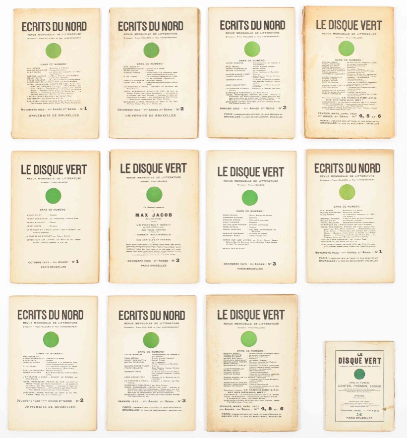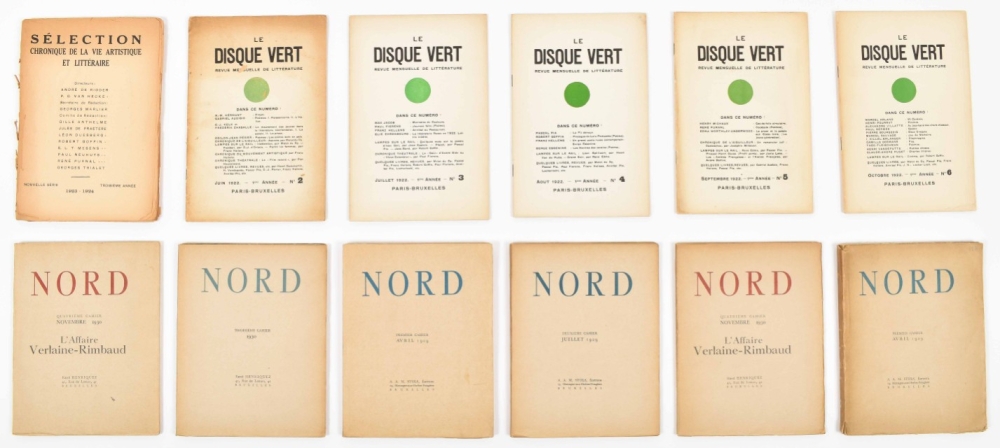 15 vols. Paris/Bruxelles, 1922-1924. Orig. paper wrappers. Texts by a.o. Max Jacob, C.J. Kelk, Franz Hellens, Pascal Pia, Henry Michaux, C.F. Ramuz, Blaise Cendrars, Raymond Radiguet. (2) Ecrits du Nord. Revue mensuelle de littérature. Paris/Bruxelles, 1922-23. Nos. 1-6. (3) Nord. Cahier. Bruxelles, Stols/Henriquez, 1929-'30. 6 vols. Incl. 2 doubles. (4) P.G. van Hecke (ed.) Variétes. Revue mensuelle illustrée de l'esprit contemporain. 3 vols. Bruxelles, 1928-'29. Orig. paper wrappers. Texts and ills. by a.o. Germaine Krull, Tristan Zara, Max Ernst, Raoul Dufy, Man Ray, Maurice de Vlaminck. - and 1 more.