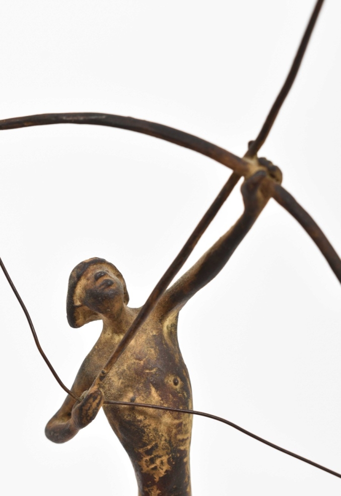 (1) Lying female figure. Approx. 18 x 13 x 13 cm. (2) Woman holding a child. H. 23 cm. (3) Archer. H. 28 cm. Detached from pedestal.
