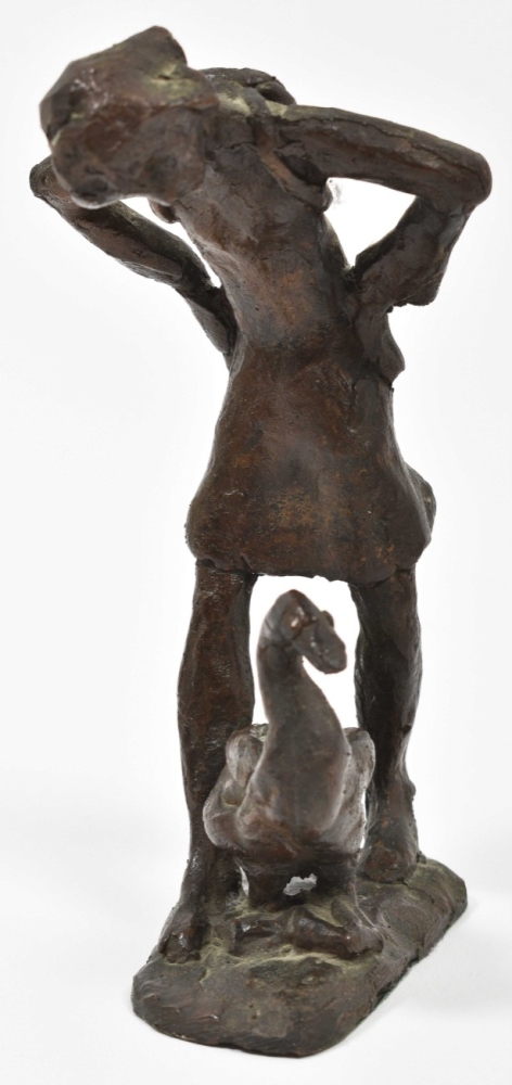Added: Unknown artist. 'Skater' & 'Goose girl'. Bronze. 26 cm & 19 cm. (total 4)
