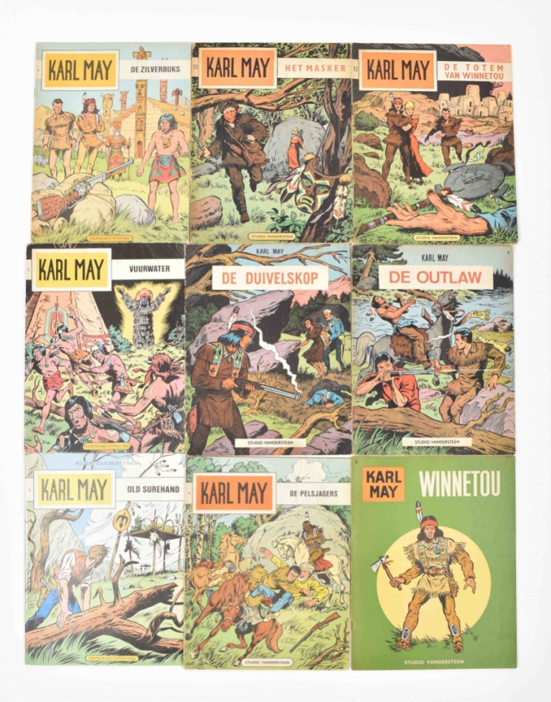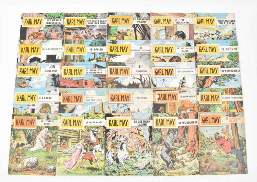 Vol. 3-24. Standaard, 1970-74. With: (2) Jerom. Vol. 5, 6, 12, 14, 18-19, 22, 28, 34, 37, 44 and 45 in first ed. -and 7 early reprints. (3) Karl May. 34 vols. in first and later editions -and 32 more Vandersteen comics (Bessy, Pats, Tits and Biggles).