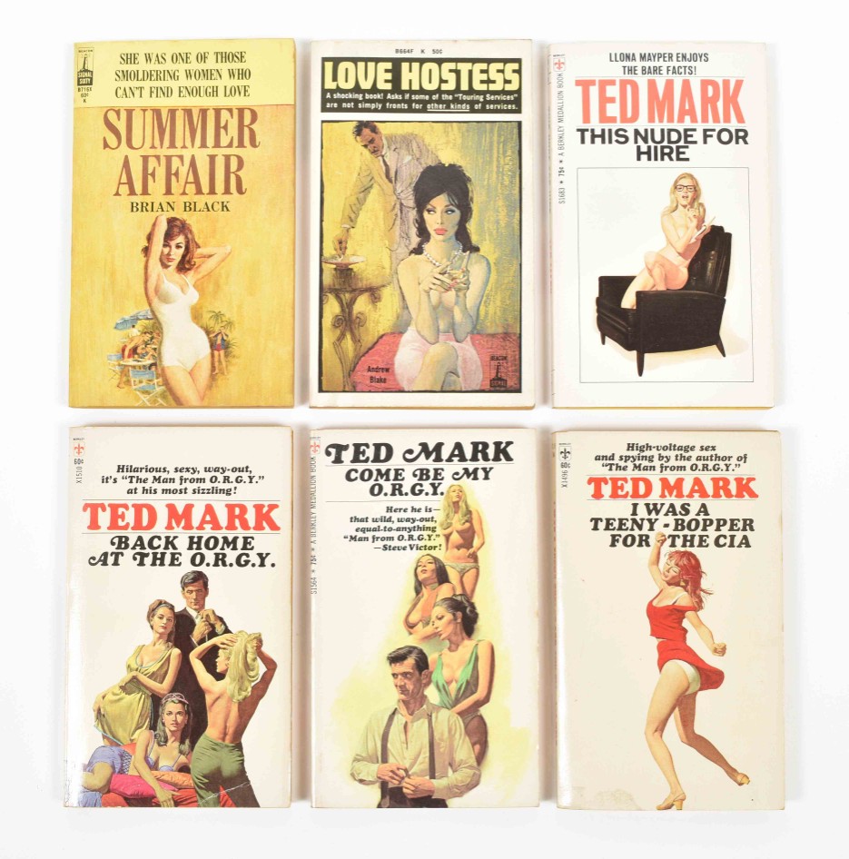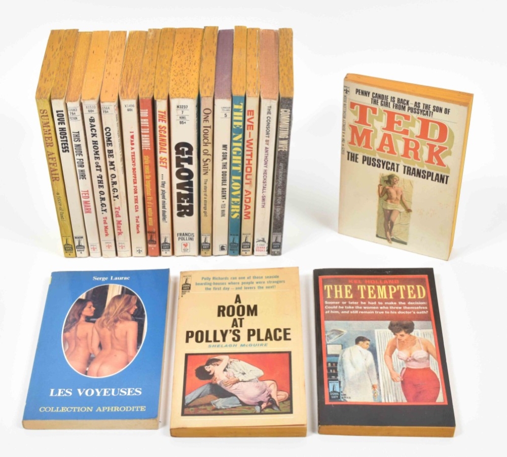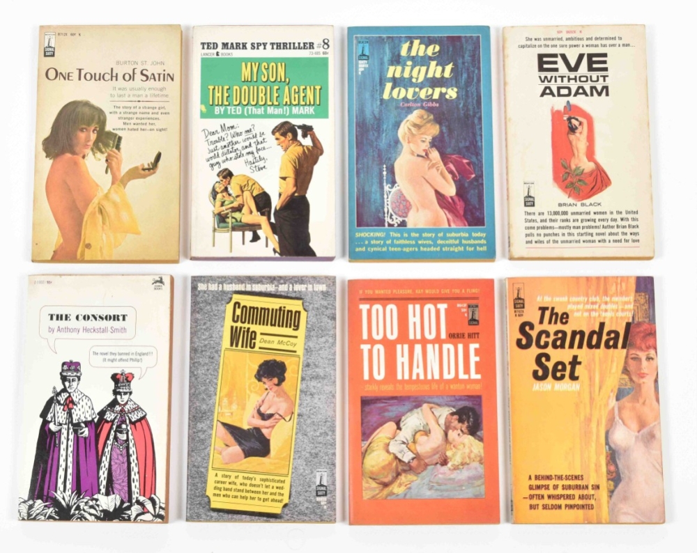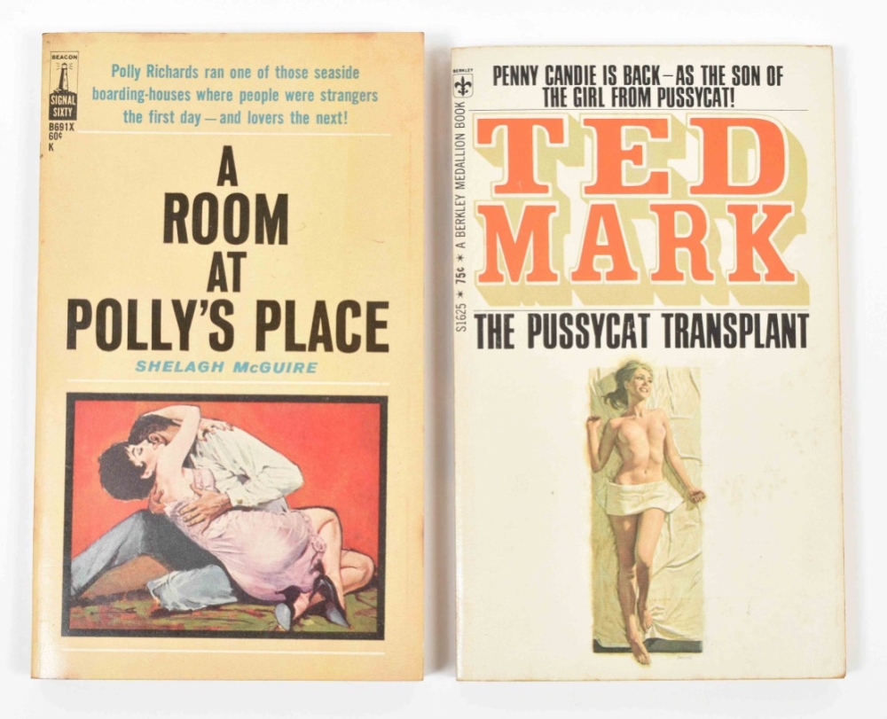 Ca. 1950-70, most publ. by Universal Publishing and Distributing Corporation, Grove Press, Lancer Books, and Berkley Medallion Books. All sc. Some sl. foxing/ discol. Includes: (1) Ted Mark, The Pussycat Transplant. (2) Shelagh McGuire, A Room at Polly's Place. (3) Serge Laurac, Les voyeuses. (4) Kel Holland, The Tempted. (5) Whidden Graham, Crimson Hairs. (6) Sheldon Lord, Sidney's Wife. (7) Joseph Braddock, The Bridal Bed. (8) and Dan Bartell, Strange Lovers.