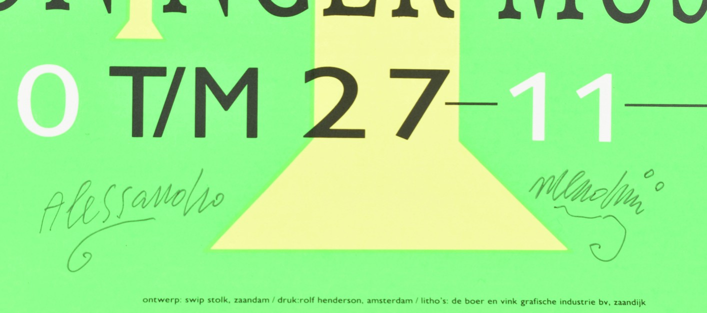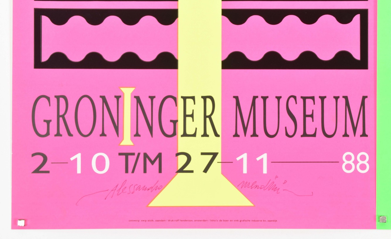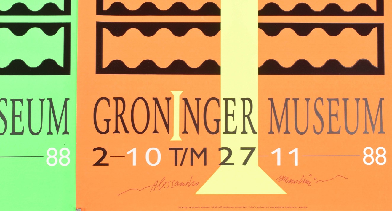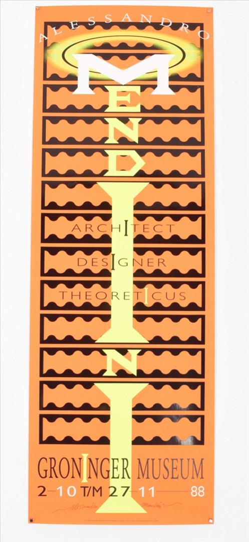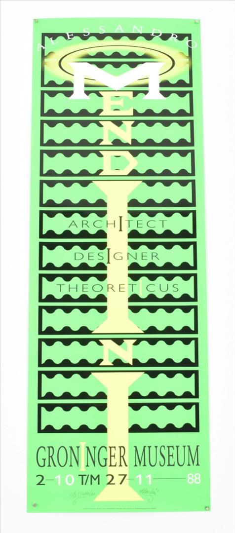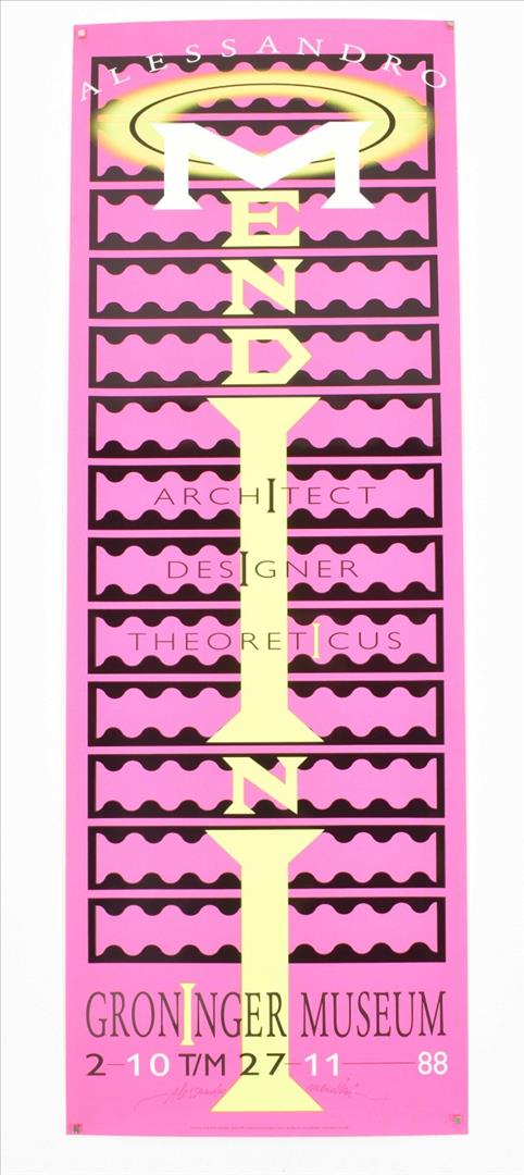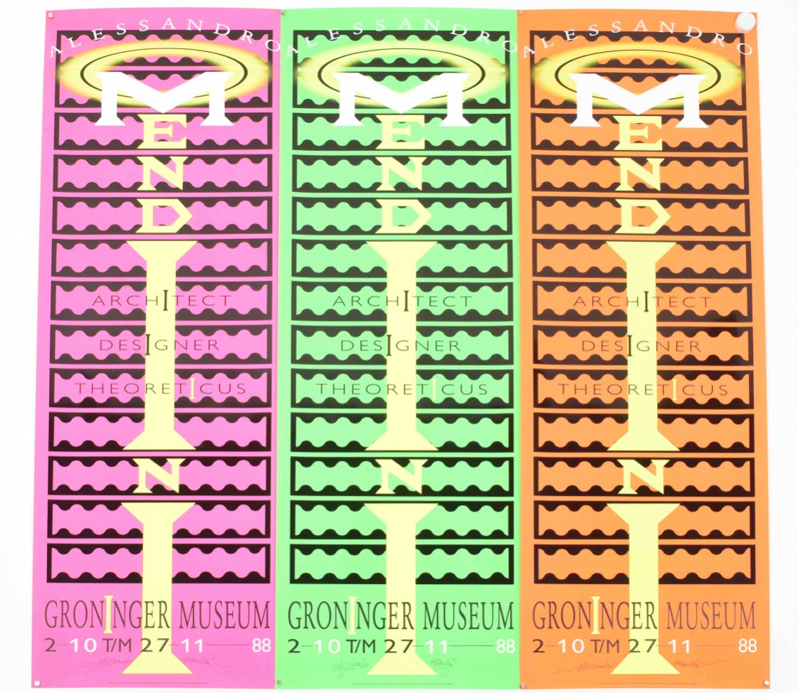 Architect Designer Theoreticus. Groninger Museum 2-10 tm 27-11, (19)88. 3 col. variants, each 84 x 29.5 cm. All signed by Mendini.