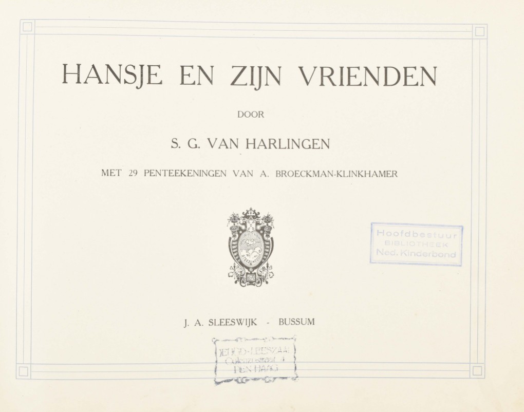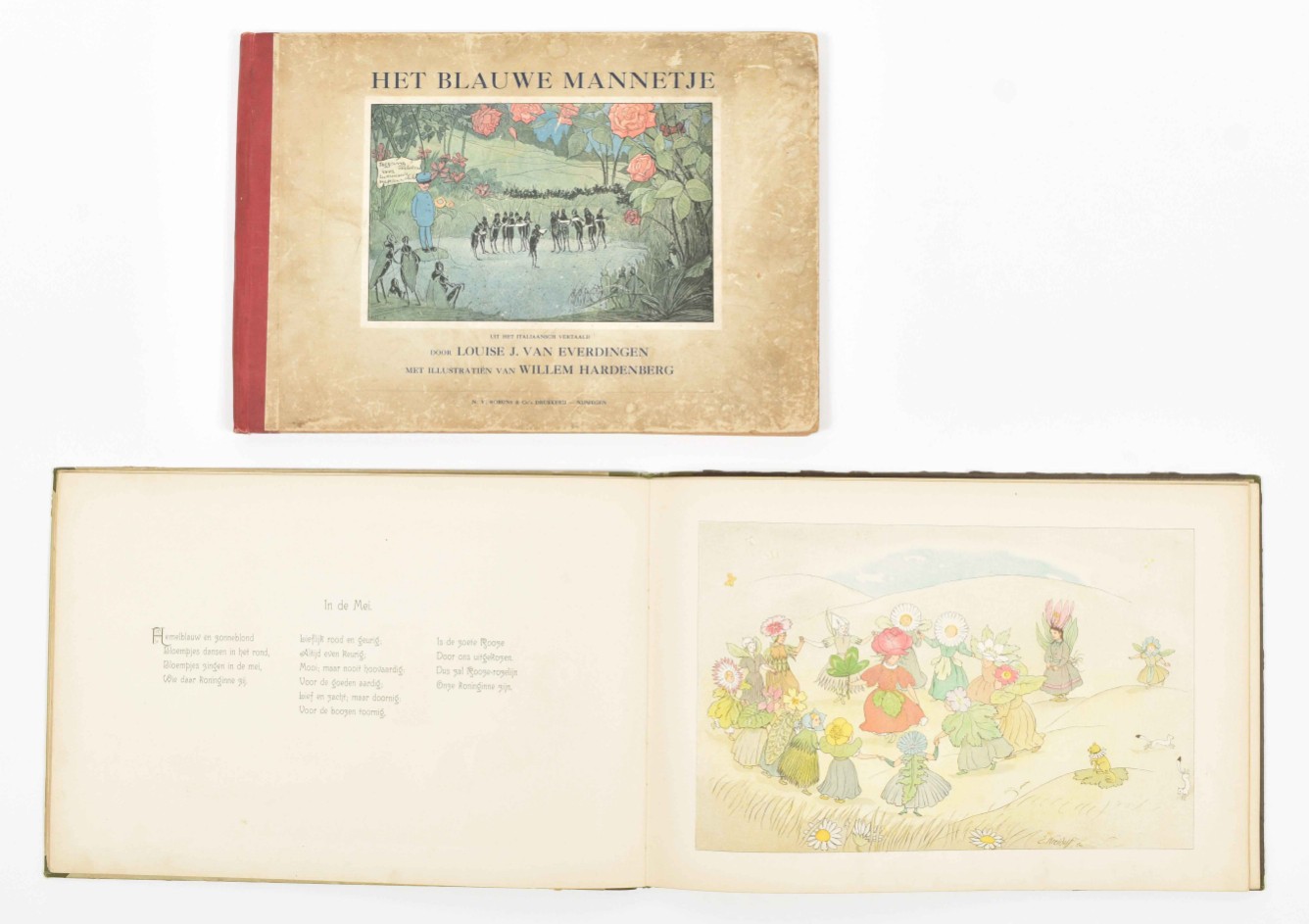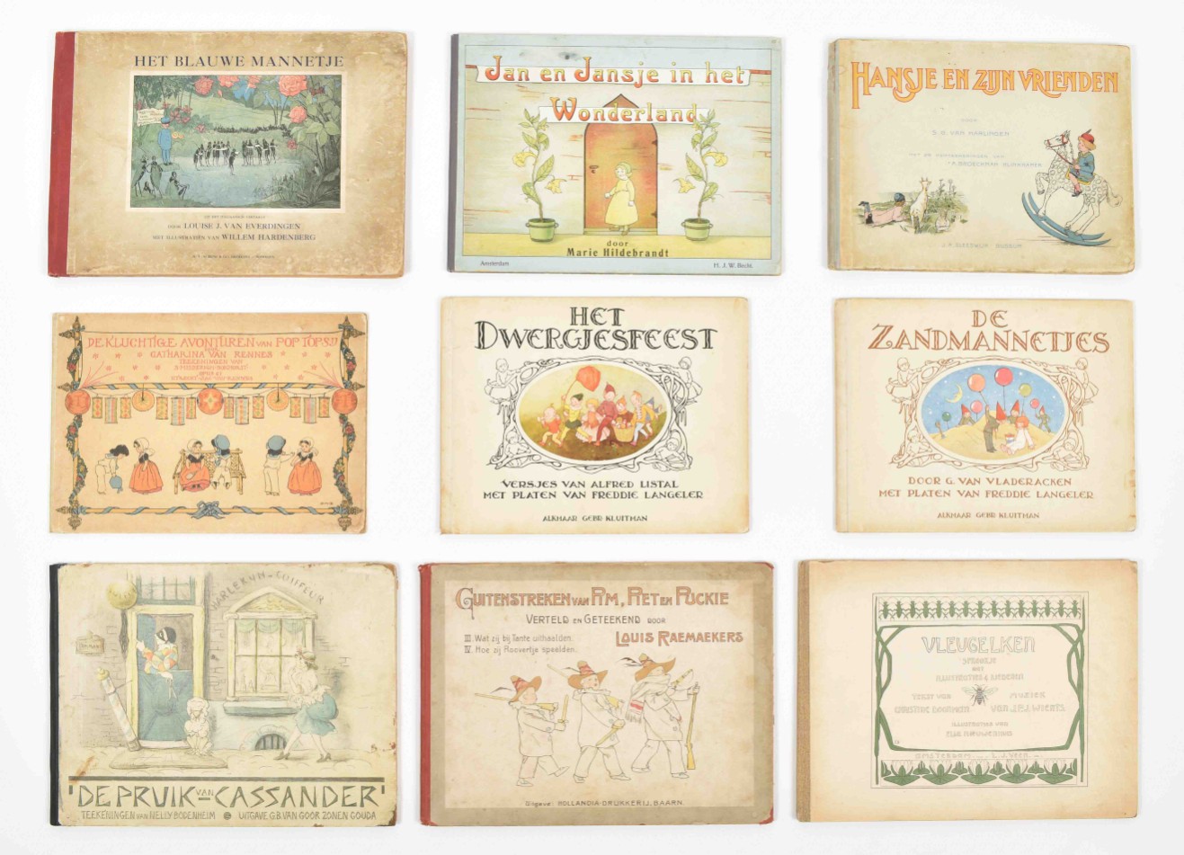 (1) Ernst Kreidolf. Bloemen-Sprookjes. Bussum, C.A.J. van Dishoeck, (1903). (48 p.). Obl. folio. Hc w. ills.. Col. full-p. lithogr. by Kreidolf throughout. Covers and spine worn, edges sl. worn, occas. foxing. The rare first edition, a second edition was published in 1911 (also rare). (2) Catharina van Rennes. De Kluchtige avonturen van Pop Topsy. Utrecht, van Rennes, (1912). 22 p. Obl. 4to. Hc w. ills. B/w ills. throughout by B. Midderigh-Bokhorst, music. Covers sl. worn/ discol., front cover sl. loose, foxing. (3) S.G. van Harlingen. Hansje en zijn vrienden. Bussum, J.A. Sleeswijk, (1909). (4),89,(3) p. Obl. folio. Hc w. col. ills. 29 sm. b/w pen drawings by A. Broeckman-Klinkhamer. Covers and spine worn -and 7 more similar works.