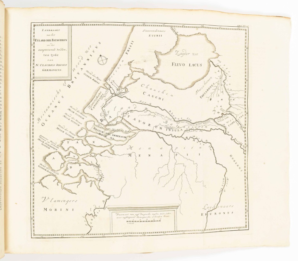der Keyzeren, Koningen, Hertogen en Graaven, welken sedert de komst der Batavieren in het thans genaamde Holland (...). The Hague, Pieter de Hondt, 1734. 2 vols. (38),348,(23); 360,(28) p. Folio. Unif. hcalf w. cloth boards. Allegorical frontisp. F. Morellon la Cave, 2x title in red and black w. vignettes by F. van Bleyswyck, complete w. 13 maps, 3 fold. engr., 7 full-p. engr., 22 genealogical tables, of which 20 are fold., and num. sm. in-text engr., uncut.