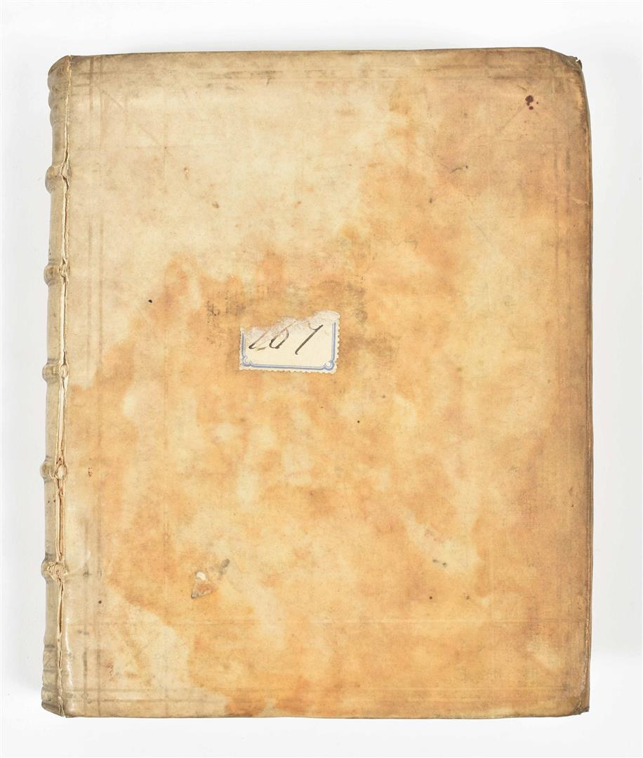 Former library sticker front cover, signature dated 1802 upper flyleaf. Covers worn/ stained, waterst. upper right corner throughout most of book, sm. wormhole close to lower joint throughout (not affecting text), browning/ foxing.