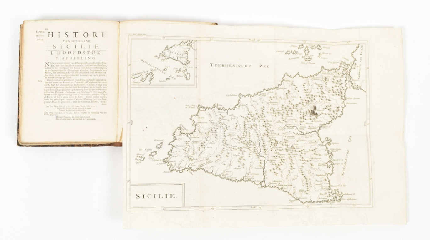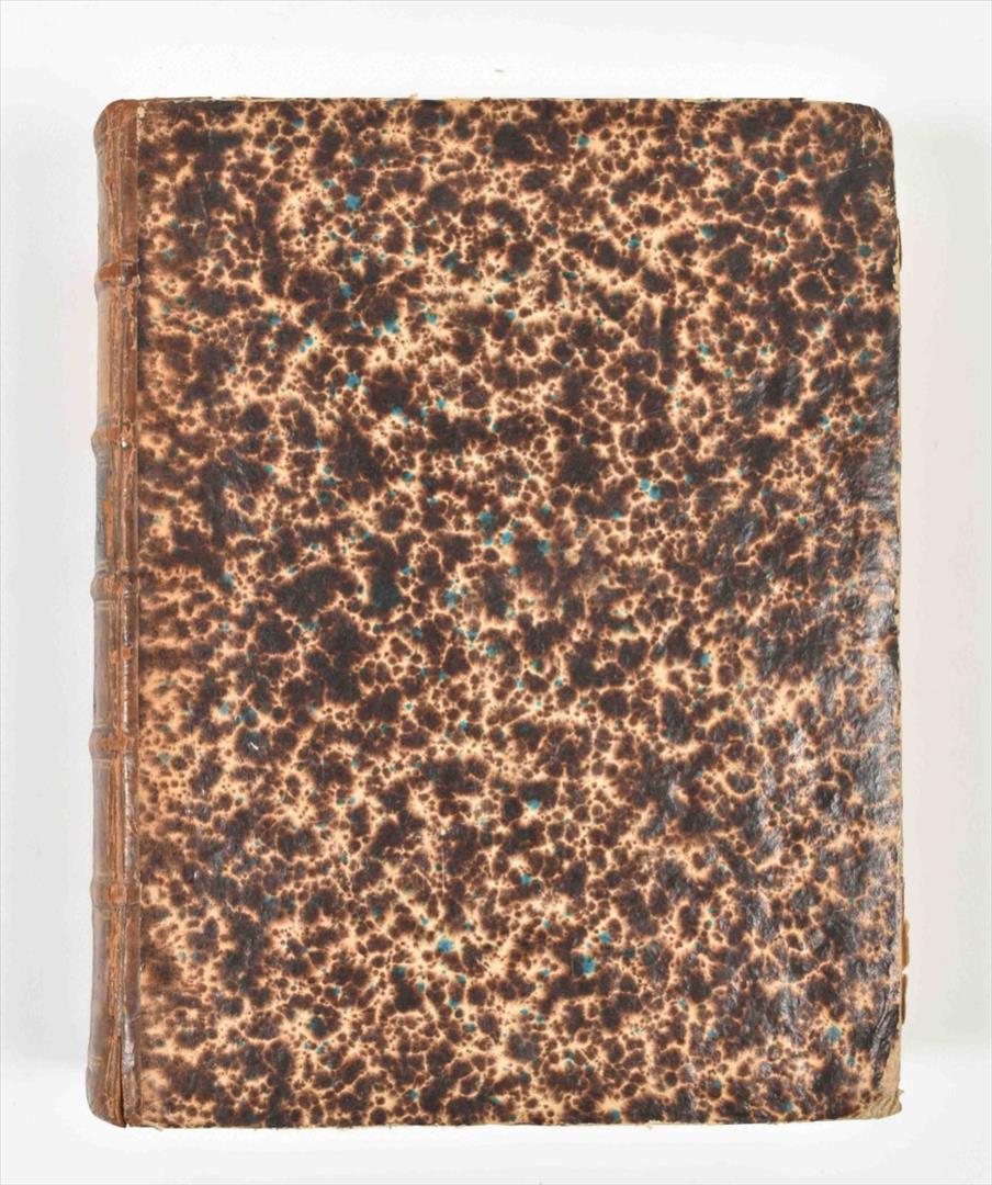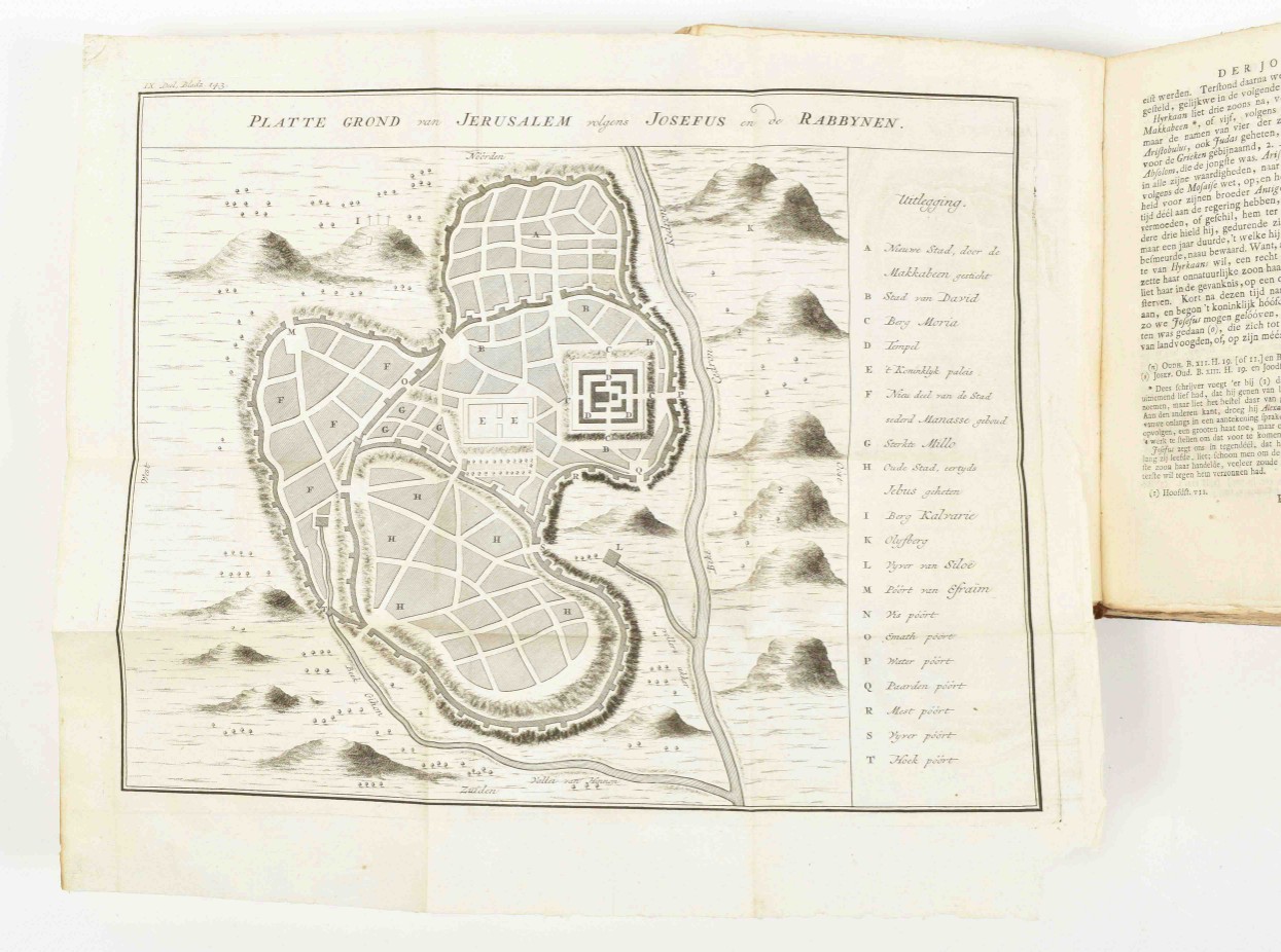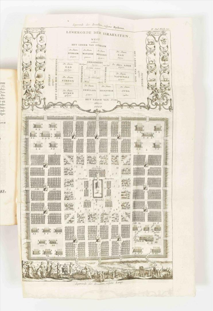 tijd toe. Getrokkken uit oorspongkelijke schrijveren: En opgehelderd met landkaerten, printverbeeldingen, tijdrekenkundige en andere tafelen. Beschreeven door een gezelschap van geleerde mannen in Engeland. Utrecht, H. & J. Besseling, 1741-55. 37 parts in 19 vols., incl. 1 index vol. 18 engr. frontisp., 109 (of 114) mostly fold. engr. plates/ maps/ views/ portraits. Unif. hcalf, marbled paper over boards, gilt title and vol. labels on raised spines w. fleurons in gold. 4to.