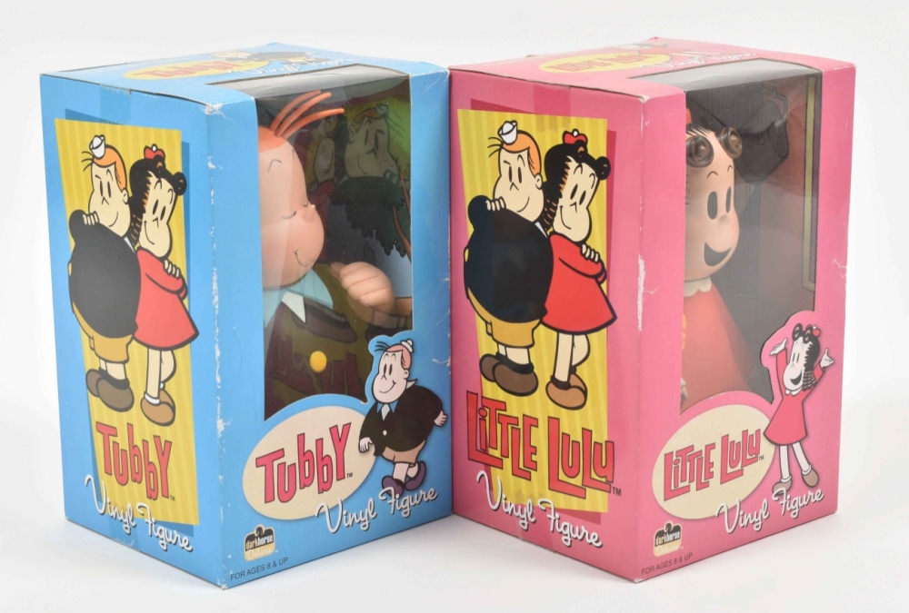 Dark Horse Books, 2005-8. 18 nos. Sc w. ills. on front cover. (2) Little Lulu, full col. Idem, 2010s. 15 vols., incl. works "Little Lulu's pal Tubby". Sc. (3) 1 col. special vol. of the same. (4) 2 dolls, one of Little Lulu, the other of Tubby. In orig. boxes, as new. Added: Harvey Comics Classics. Vols. 1-5. Dark Horse Books, 2007-9. Ill. sc.