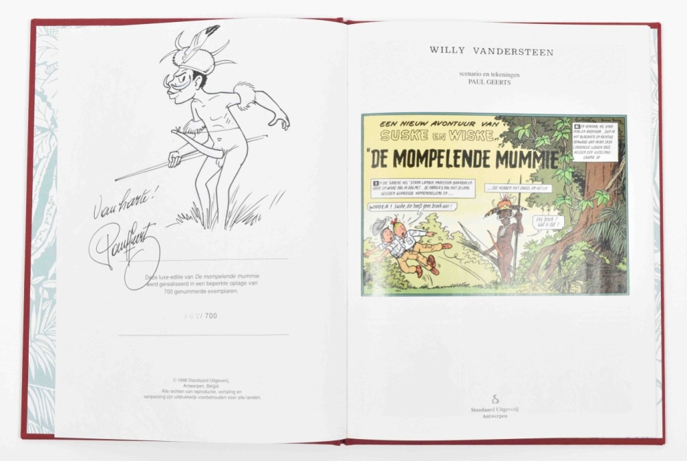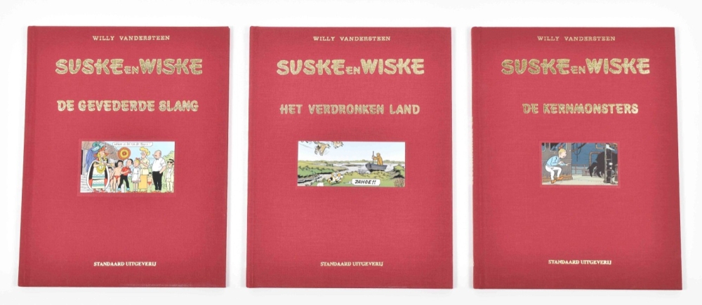 Standaard, 1996-2001. Hc gilt red cloth w. mounted plate. Nos. 250-6; 258; 260-1; 263; 265-7; 269. 11 w. dedidace by Paul Geerts. Incl. a few duplicates.