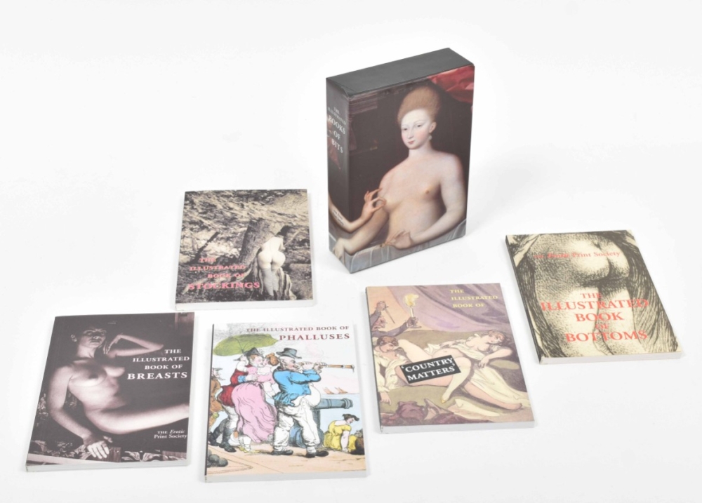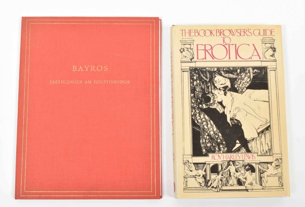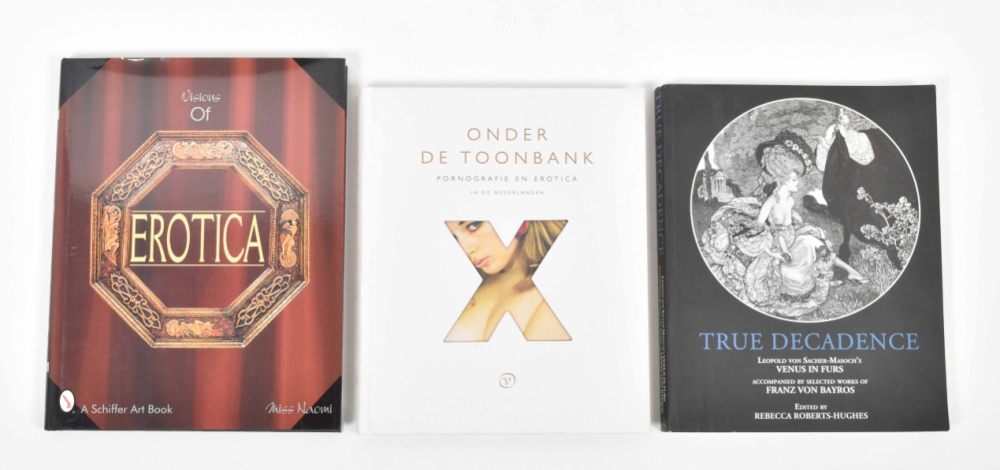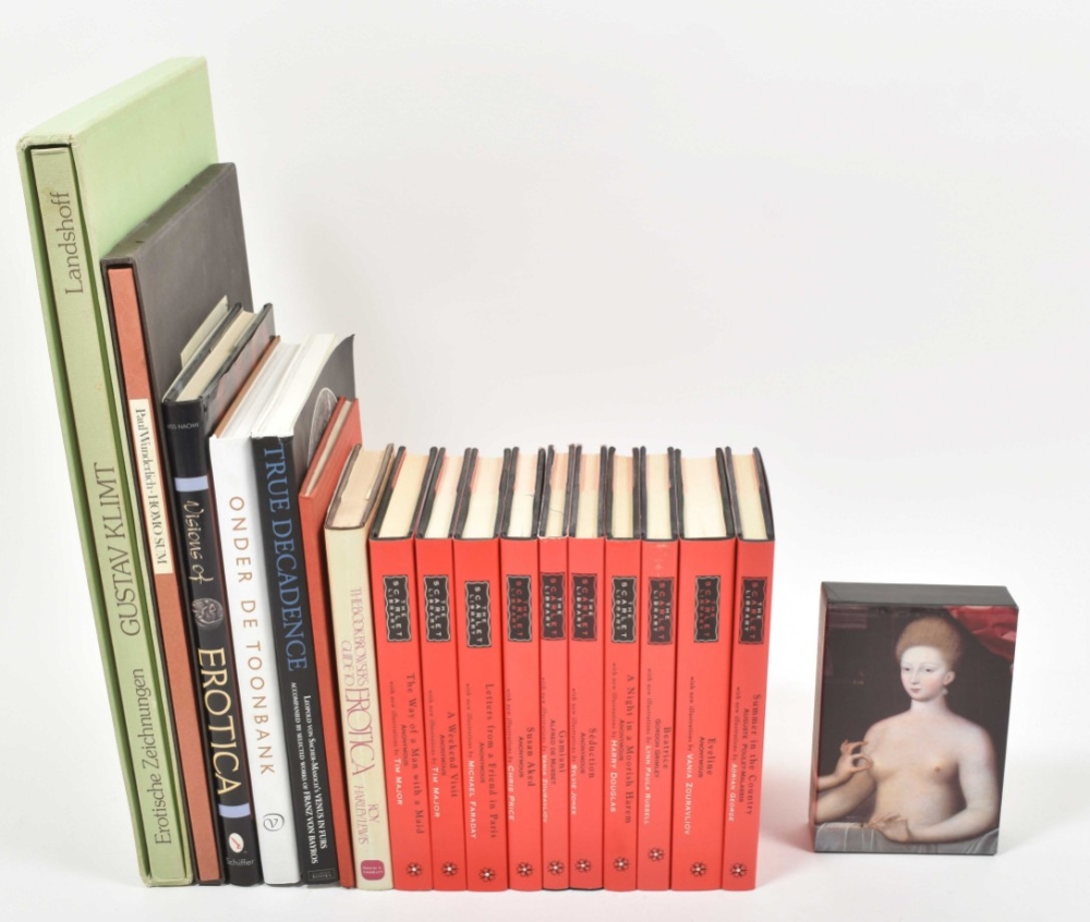 (1) 10 vols. of the Scarlet Library. 8vo. Unif. hc w. red dust-j. Num. full-p. col. ills. Very good cond. (2) Rebecca Roberts-Hughes, ed. True Decadence. Leopold von Sacher-Masoch's Venus in Furs (...). London, Erotic Review Books, 2007. 223 p. 4 to. Sc. Num. b/w (full-p.) ills. (3) The Illustrated Book of Bits. London, Erotic Print Society, 1996-7. 5 vols. in 1 orig. slipcase. (4) Miss Naomi. Visions of Erotica. Atglen, Schiffer Publishing, 2000. 176 p. 4to. Hc w. dust-j. Num. col. photos/ ills. Very good cond.