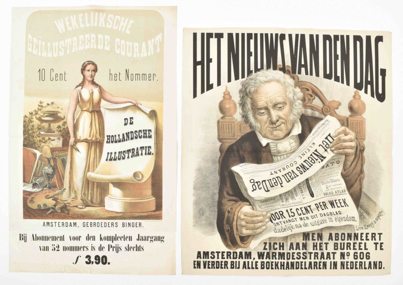 [Newspapers] Two rare posters: (1) "Het Nieuws van den Dag
