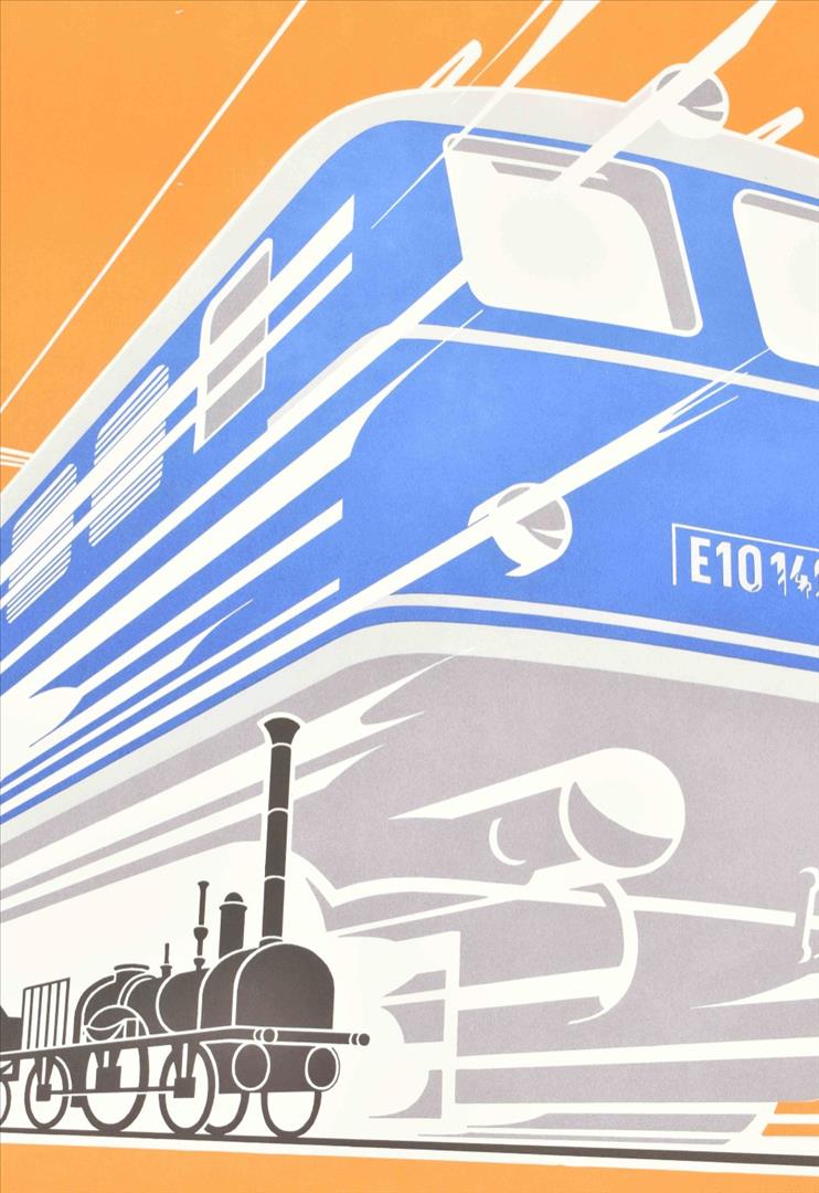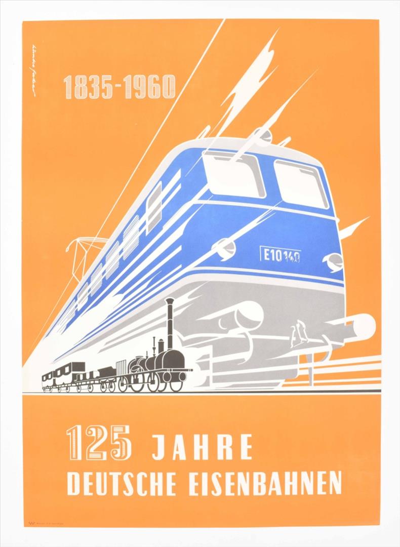 (2) 1835-1960. 125 Jahre Deutsche Eisenbahnen. Walcker, Isny im Allgäu, 1960. Des. by Himke Faber. Offset, 84 x 59 cm. (total 2)