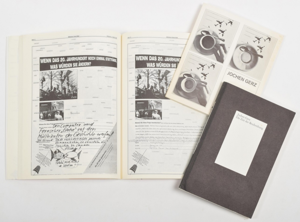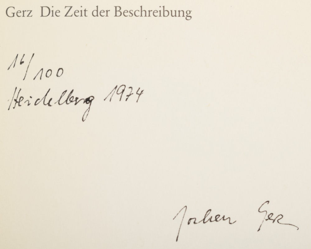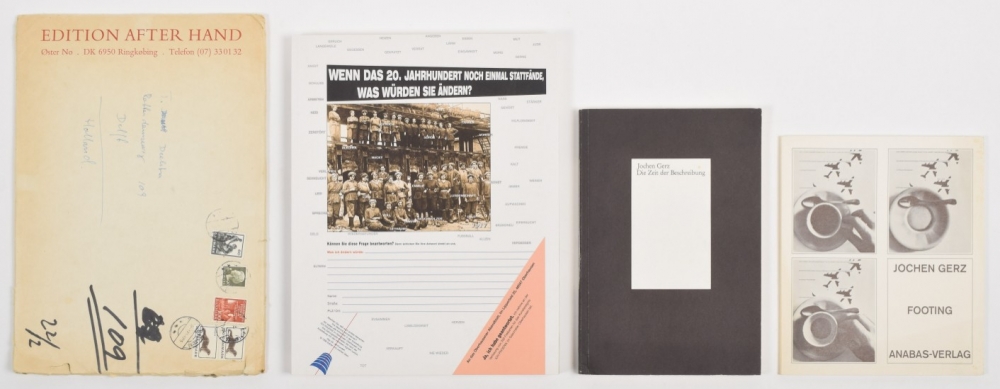 + Die Zeit der Beschreibung, Heidelberg 1974. Signed copy 16/10 + Piece 31; A Danish Exorcism, Edition After Hand, 1976. In original envelop. - and Jochen und Esther Gerz, Das 20. Jahrhundert, Klartext Essen, 1996. (total 4)