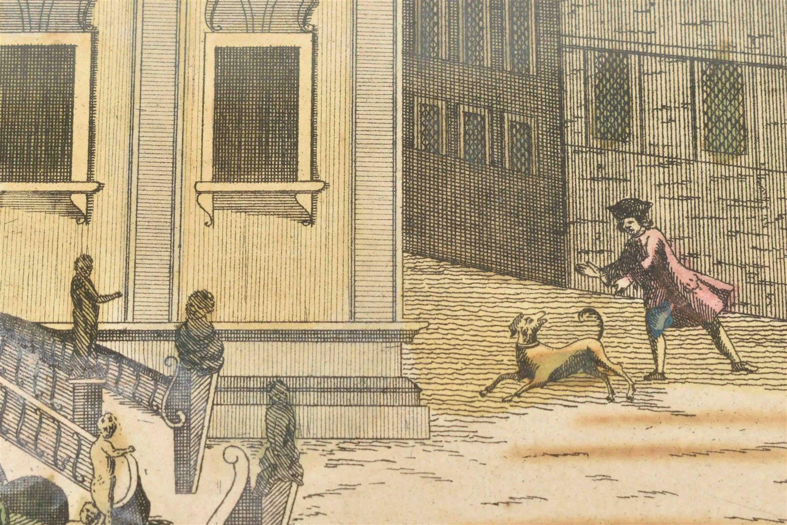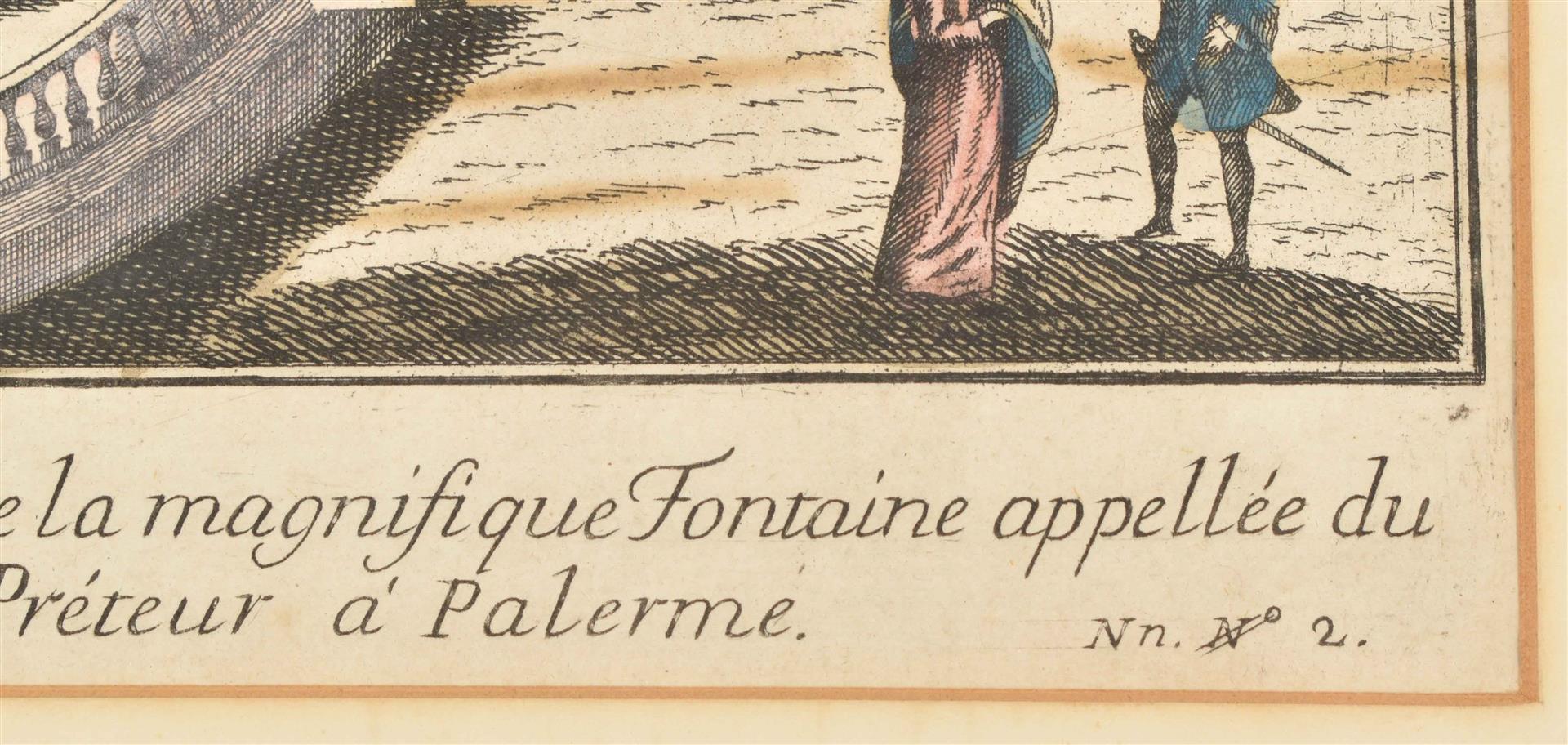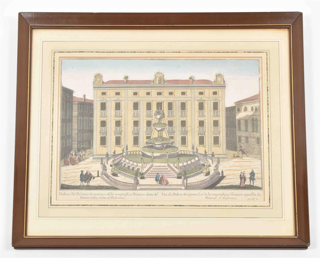 Contemp. col. copper engr. "View of Palazzo Senatorio" in Palermo, ca. 1760. 28 x 40 cm, framed under glass, 50 x 58.5 cm.