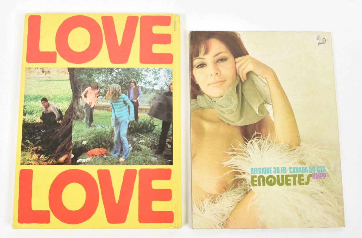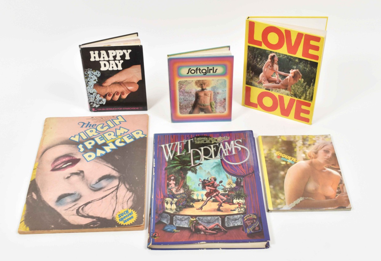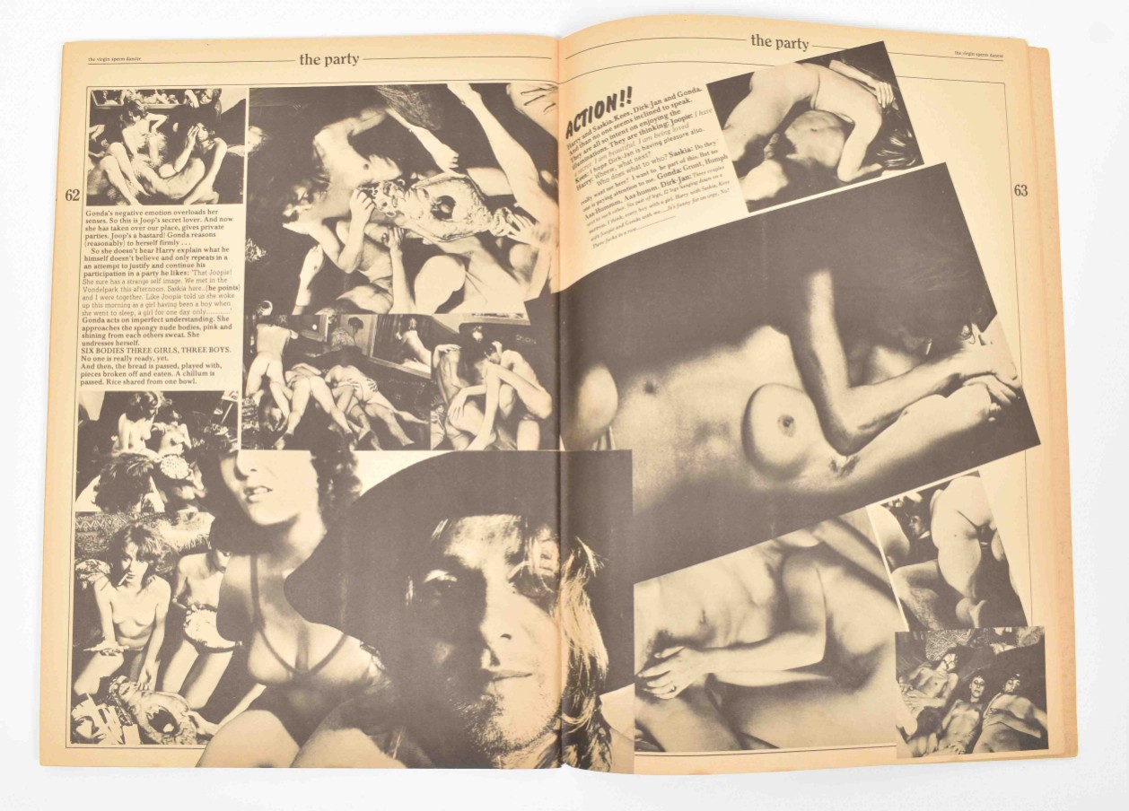 An ecstatic journey of a boy transformed into a girl for one day, and her erotic adventures in Amsterdam, magic centrum. Photogr. by Ginger Gordon, written by William Levy, des. by Anthon Beeke. The Hague, Bert Bakker, 1972. 72 p. Orig. stapled wr. Folio. Wr. sl. worn, browning. Added: Wet Dreams. Festivals presented by Suck, that European Sexpaper. William Levy, ed. Des. by Willem de Ridder. Amst., Joy Publications, 1973. 263 p. Orig. ill. sc (sl. worn). Sm. folio. -and 4 other erotic 1970s publ.