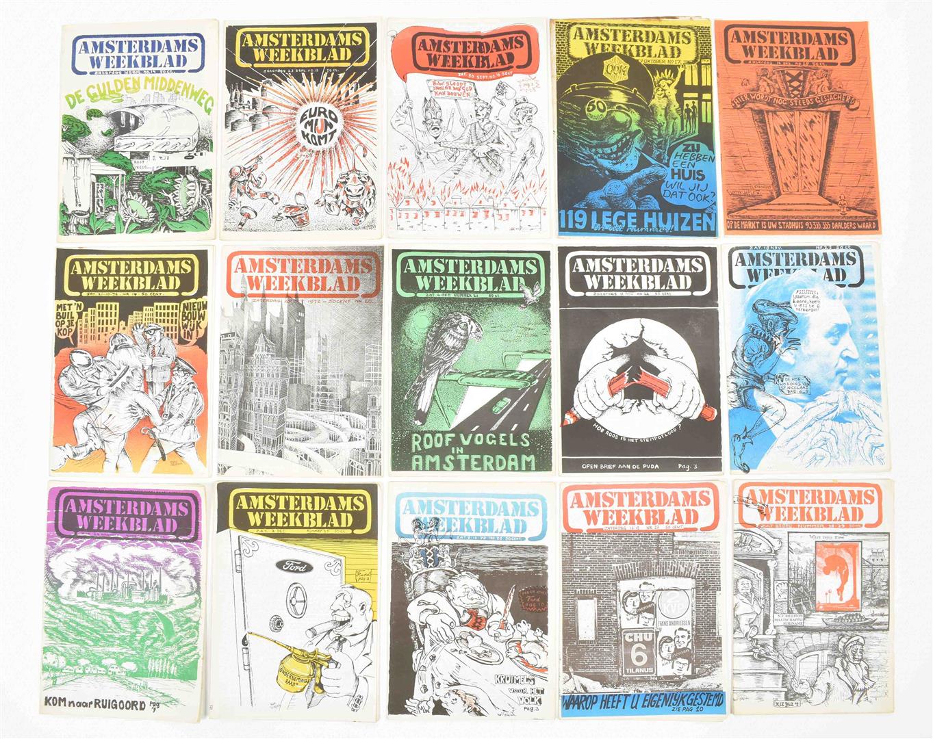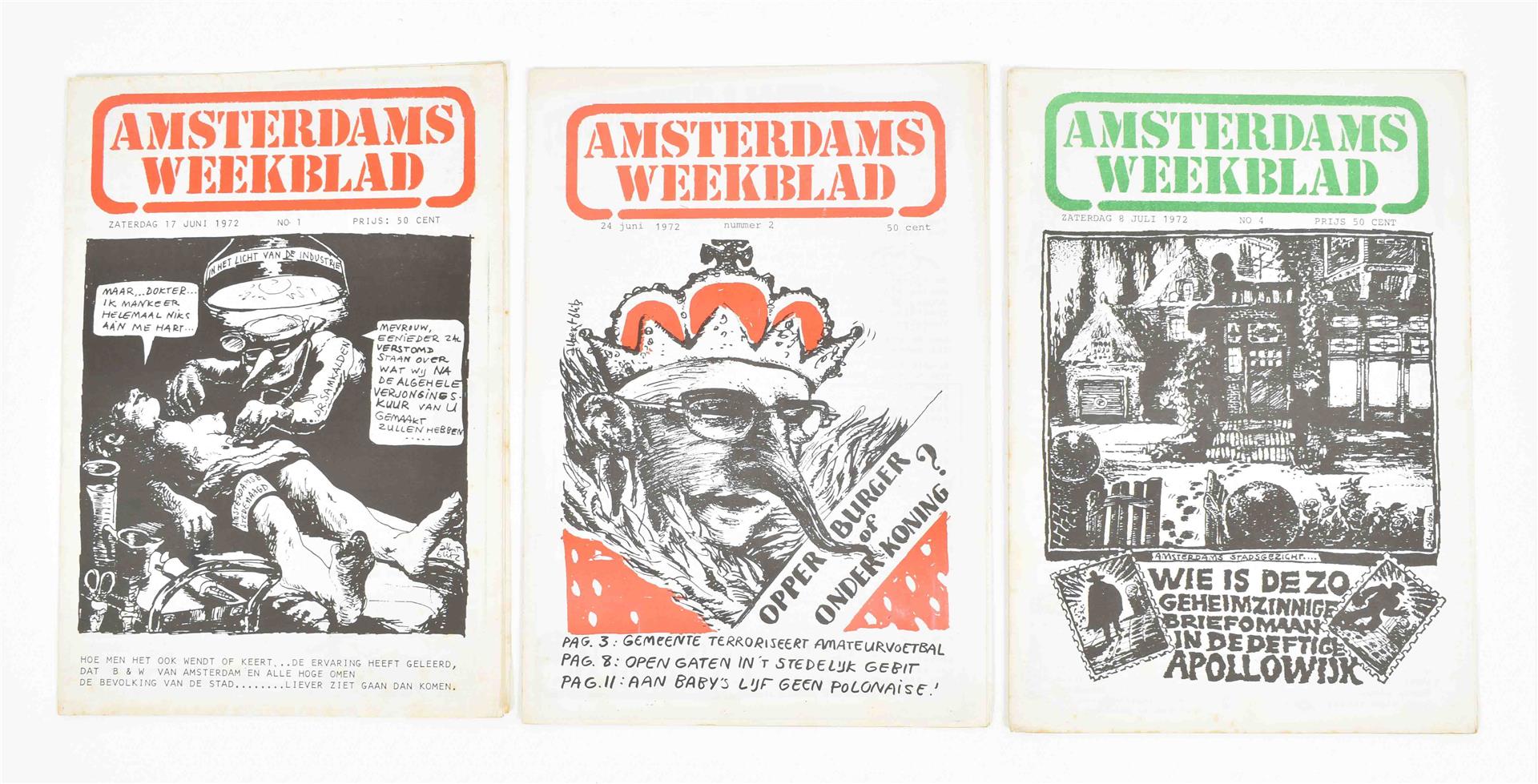 The Amsterdams Weekblad was founded in response to housing shortages and city renewal. The magazine was made by volunteers w. ties to well-known action groups such as Provo. (total 70)