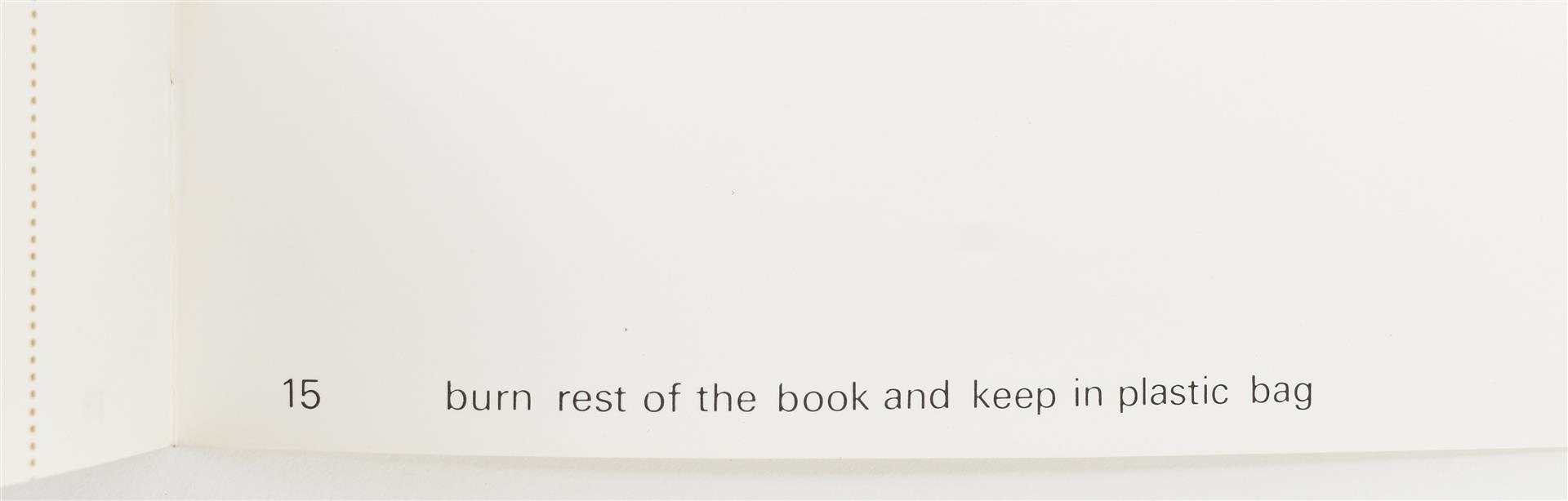 Transparent plastic pouch, containing a stapled booklet, 29.5 x 21 cm, 16 pp. Edition of 250 signed and numbered copies, this one signed and numbered 191 in pencil on verso of label.