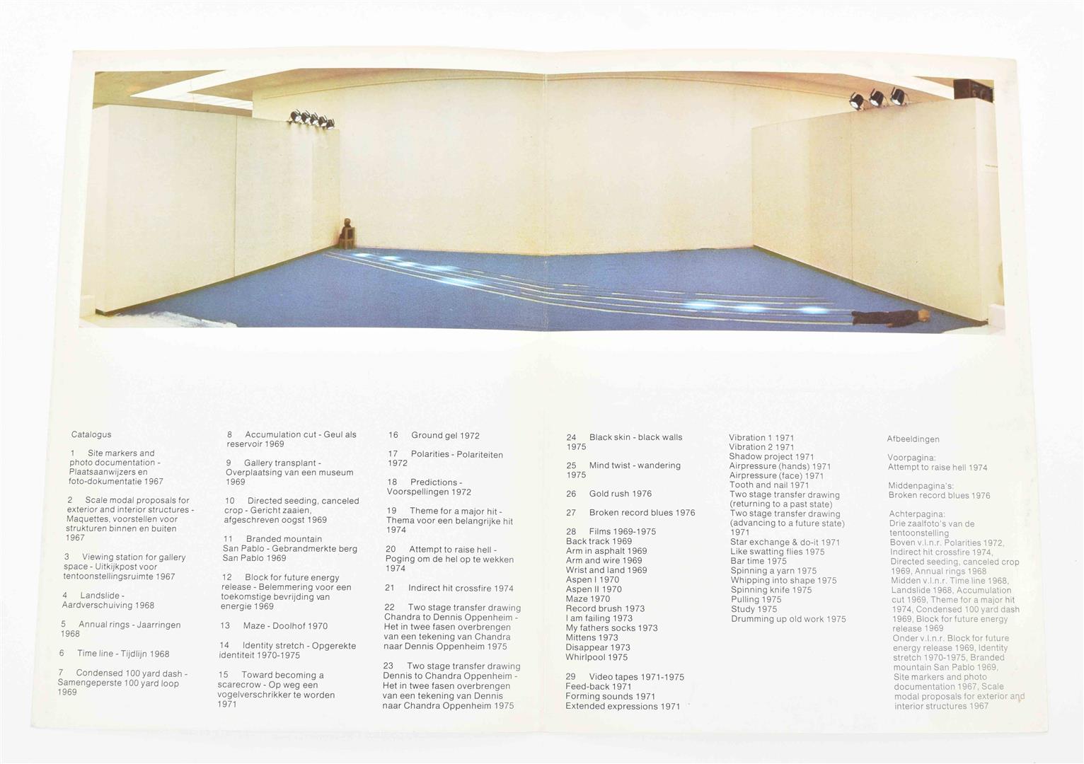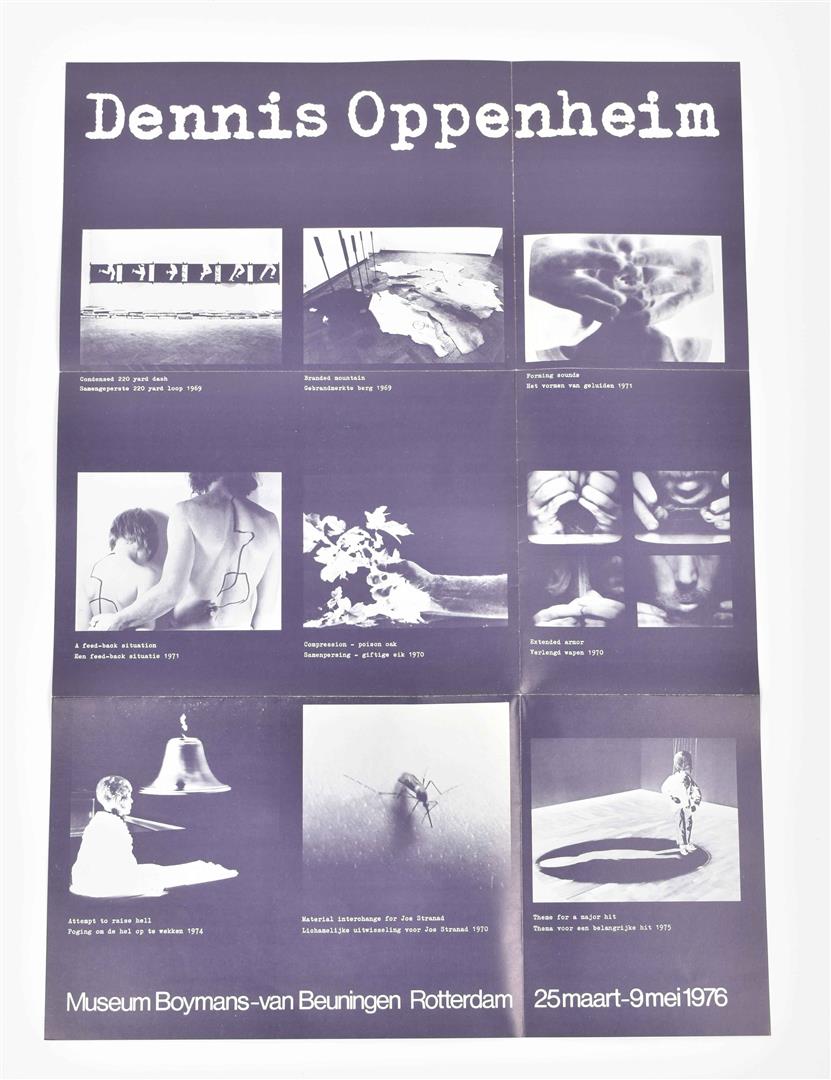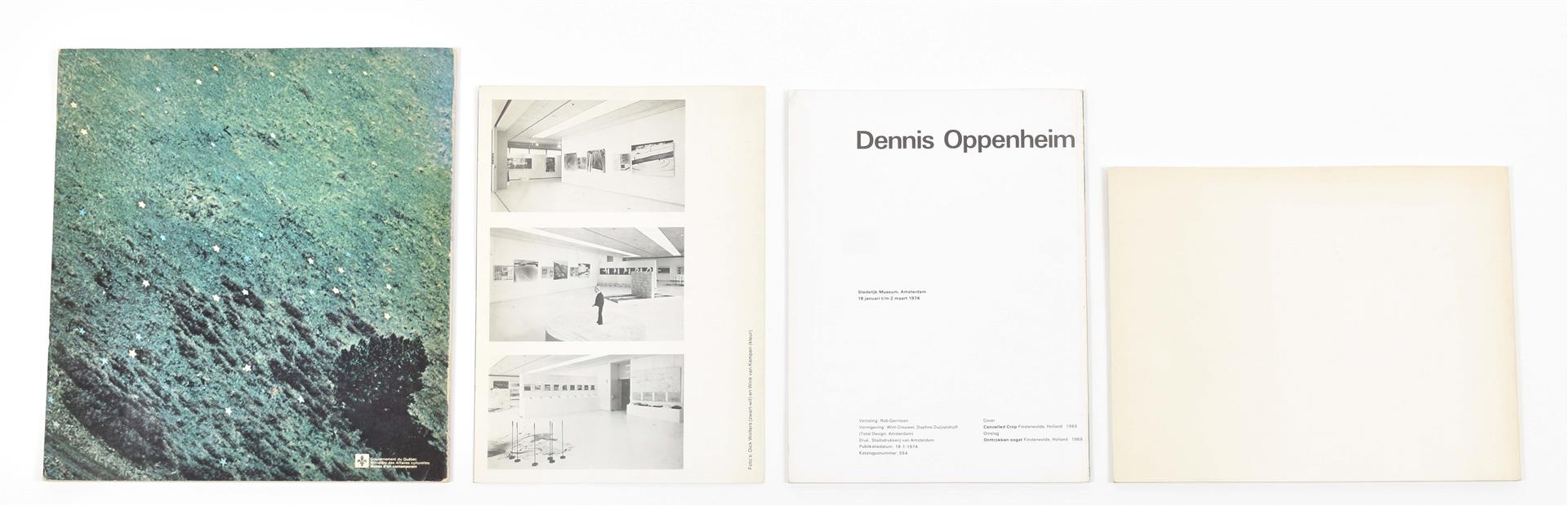 (1) Dennis Oppenheim. Amsterdam, Stedelijk Museum, 1974, 60 pp. (2) Dennis Oppenheim. Rotterdam, Boymans van Beuningen, 1976, 4 pp. Includes folded poster, 60 x 42 cm, printed blue and white.