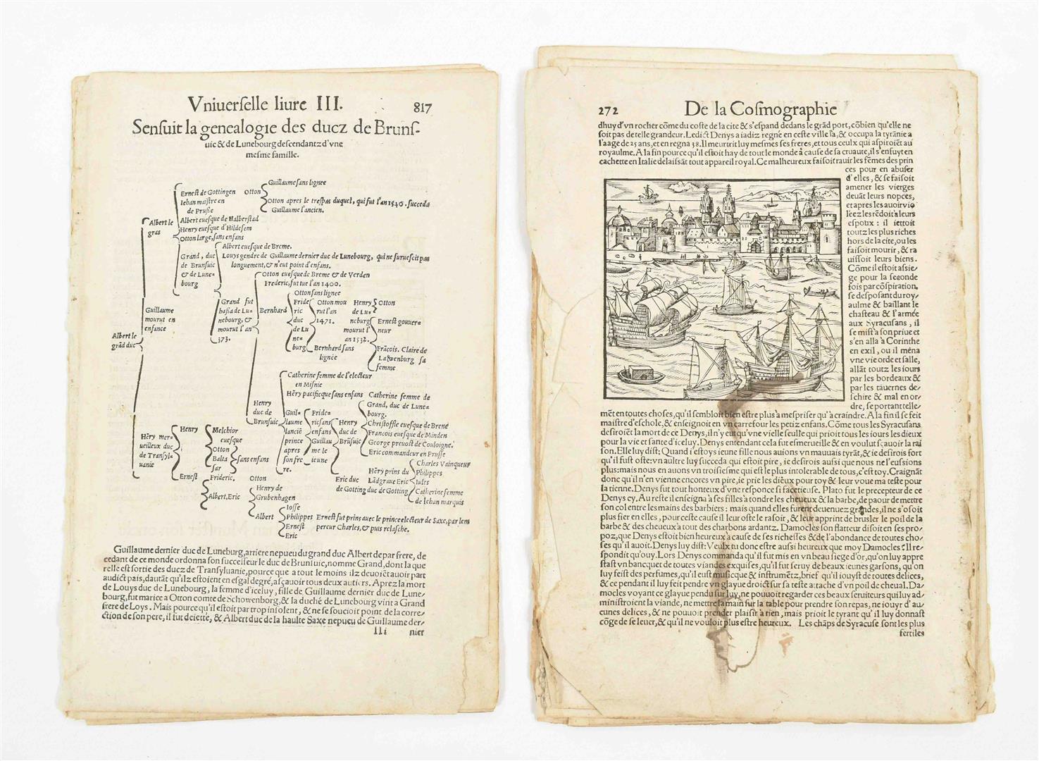 Occas. staining, some tears and several lvs. cut short, sold as a collection of lvs., not subject to return. The work was a French-language adaptation of the work of Sebastian Münster's Cosmographia. (total 32)