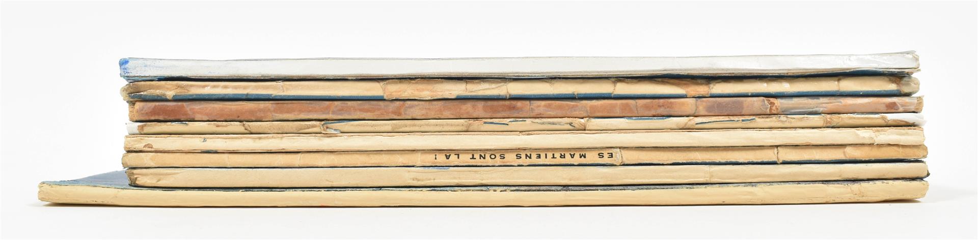 Vols. 2-6. (Tartaarse Helm - De Schat van Beersel - Het geheim der Gladiatoren - De Gezanten van Mars - De Groene Splinter). Standaard, 1953-1957. All with imperfections/defects, but in fair condition. With: (2) Tijl Uilenspiegel. De Opstand der Geuzen. Standaard, 1954. Cover amat. rest. Added: Mr. Lambique, Bob et Bobette dans Les Mariens Sont La! Lombard, 1956. Cover neatly rest. to book block -and Le Tresor de Beersel from the same series.