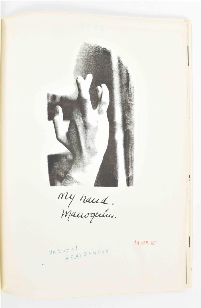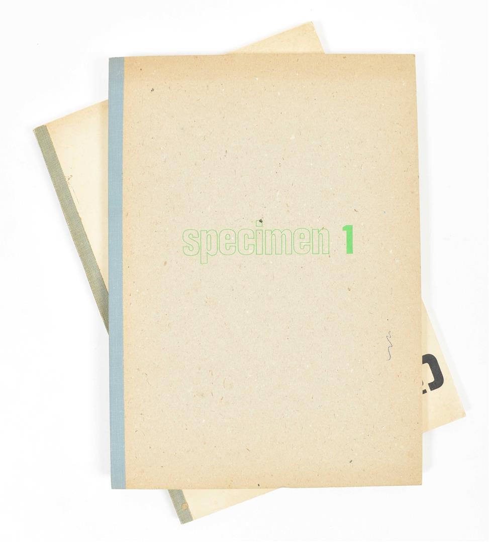 (1) Specimen 1. Contributions by Felipe Ehrenberg, G. J. de Rook, Sigurdur Gudmundsson, Ad Gerritsen and others. Inlaid postcard by Clemente Padin, folded print by Dalibor Chatnry and Exp/press brochure. Name on first page, small pen doodle on cover, else very good. (2) Specimen 2 1/2. Special issue themed 'Hand'. With some handmade/rubber stamp additions. Contributions by Felipe Ehrenberg, Geza Perneczky, André Thomkins, Jochen Gerz and many others. Inlaid are 2 cards by Robin Crozier and Raul Marroquin. Name on first page, light age toning to front cover, else a fresh copy. (total 2)
