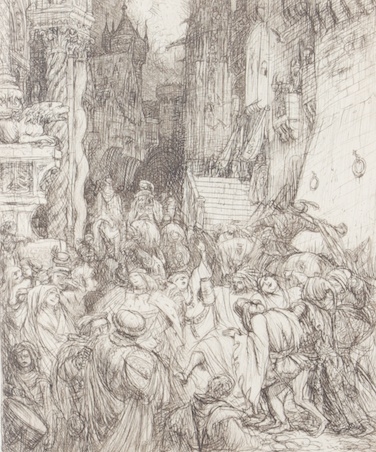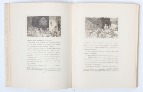 Conte populaire traduit litteralement du Roumain, ouvrage orné de 67 Eaux-fortes. Translated by William Ritter. Ills. M.A.J. Bauer. Adornments G.W. Dijsselhof. Amsterdam, 1897. 42, (6) p. number 144/250. Bound in parchment.