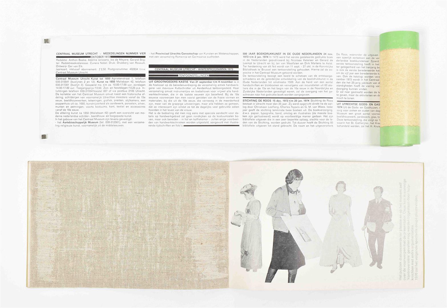 Ger van Elk's version (No.4) contains long strokes of printed paper (430 x 13 cm), rolled and sent in a cardboard tube. Rob van Koningsbruggen inserted an original painting on canvas (No.10), Rudi van de Wint made a triangle shaped booklet. The initial editorial team consisted of Anthon Beeke, Gerard Stigter, Adeline Janssens, Jos de Meyere, Hoos Blotkamp. Artists include Jan Schoonhoven, Pieter Holstein, JH Moesman, Sandberg, Lucebert, Lucassen, Armando, Carel Visser, Constant, Douwe Jan Bakker, Hetty Huisman, Marja Samsom/Miss Kerr et al. Detailed list available. The copies are in used state. Very rare complete collection. (total 28)