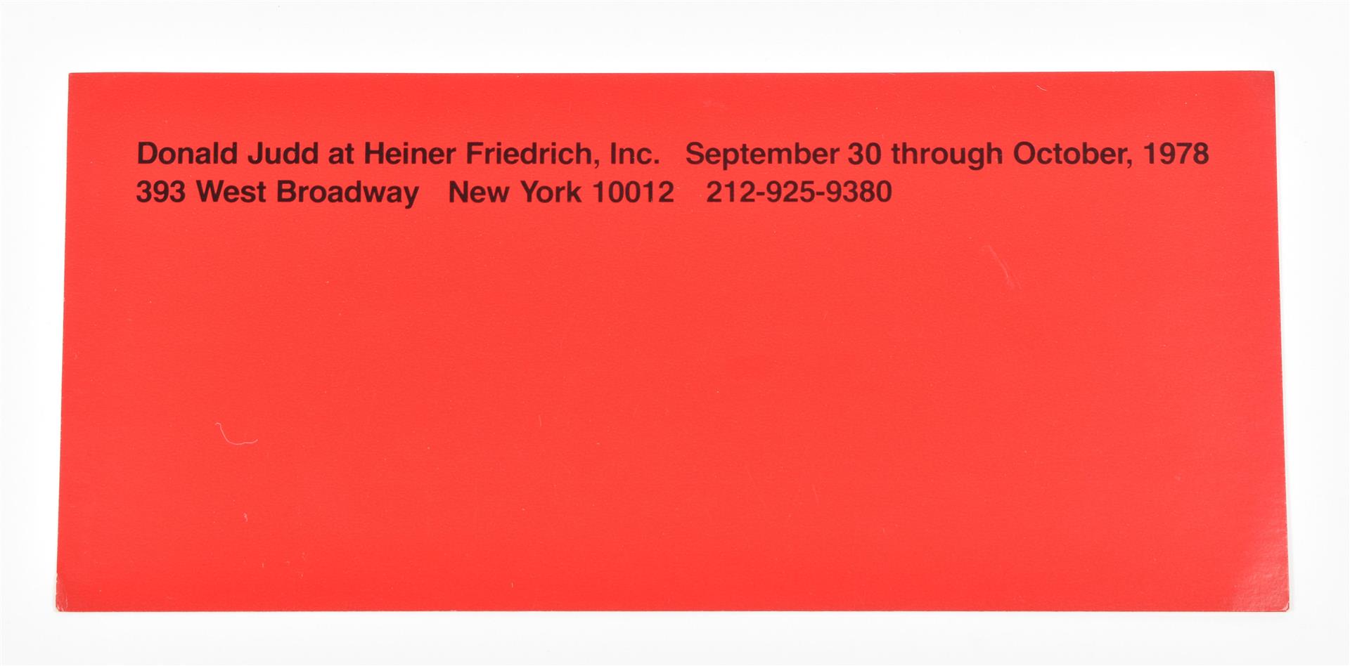 (5) Kunsthalle Bern, Museum of Modern Art Oxford (card and flyer), Annemarie Verna Zurich, all 1976. (6) ACE Venice CA ('concrete') and Los Angeles ('metal'), Galerie Bottrop Basel, both 1977. (7) Kröller Müller Otterlo, Vancouver Art Gallery, Heiner Friedrich New York, all 1978. (8) Van Abbemuseum Eindhoven, Heiner Friedrich Cologne, Annemarie Verna Zurich, all 1979. (total 19)