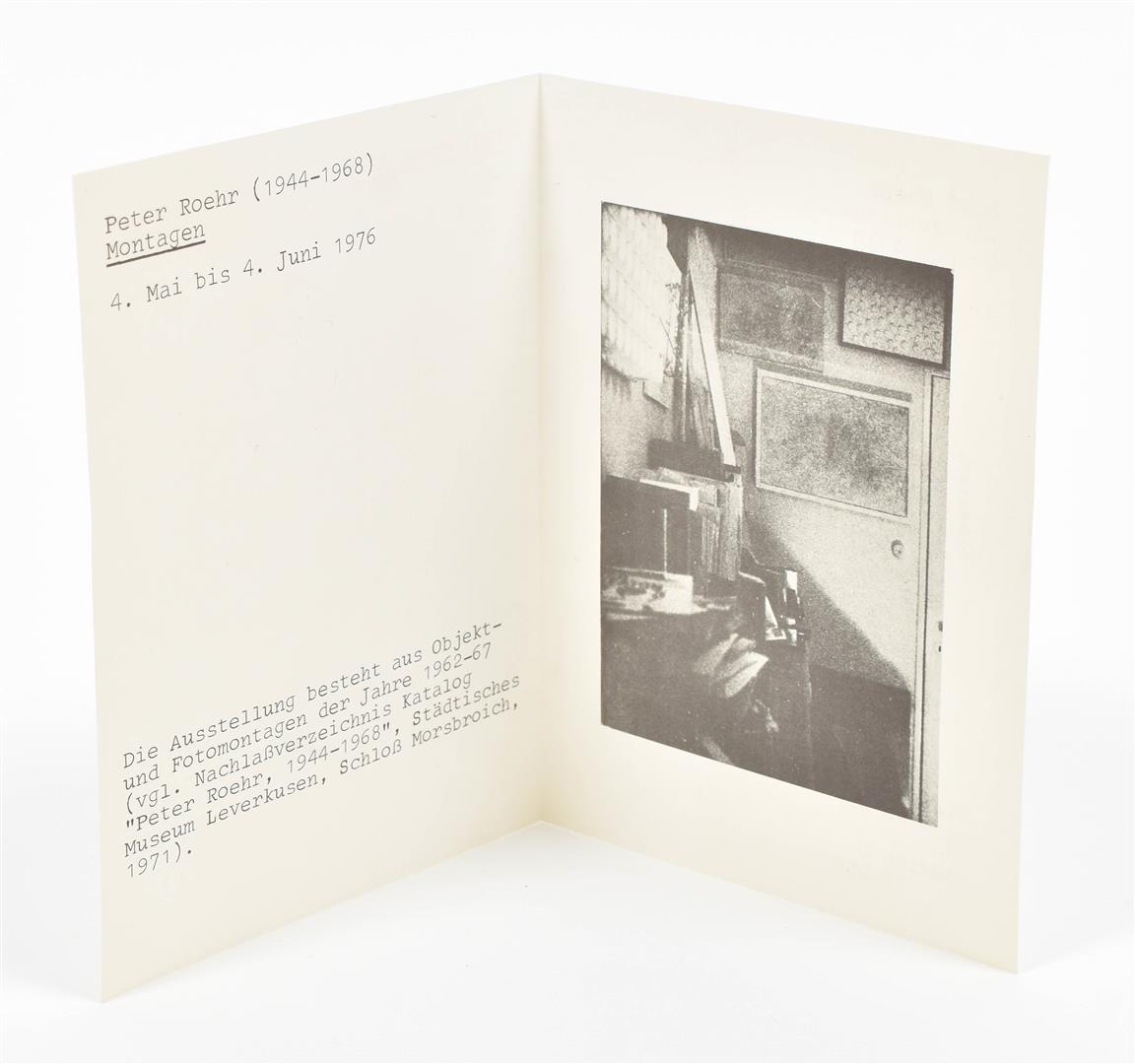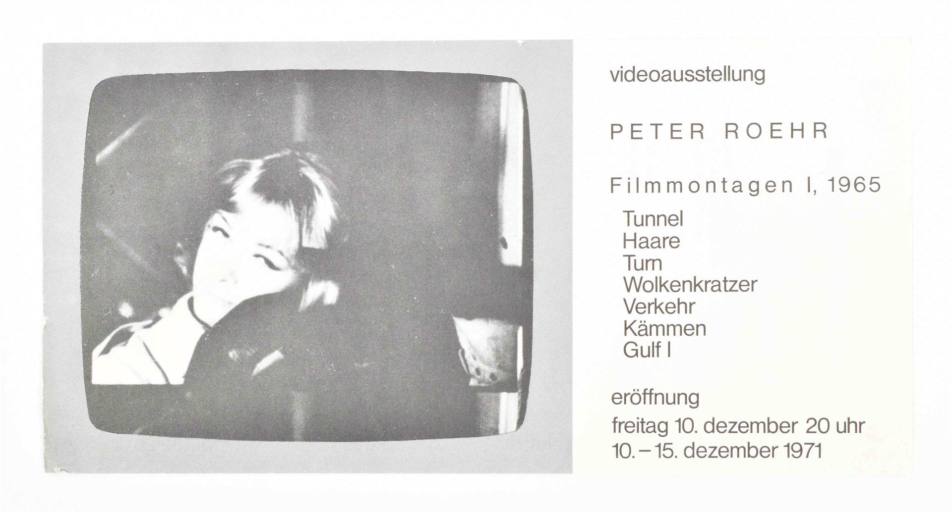 The German artist Peter Roehr (1944-1968) became known for his serial montages which included objects, photo, film and sound montages as well as text or 'typo-montages'. He collaborated closely with Paul Maenz, amongst others in organizing the 1967 exhibition 'Serielle Formationen' with André, Dibbets, Haacke, Judd, Manzoni and Schoonhoven. Paul Maenz gallery was instrumental in keeping the artist's legacy alive.