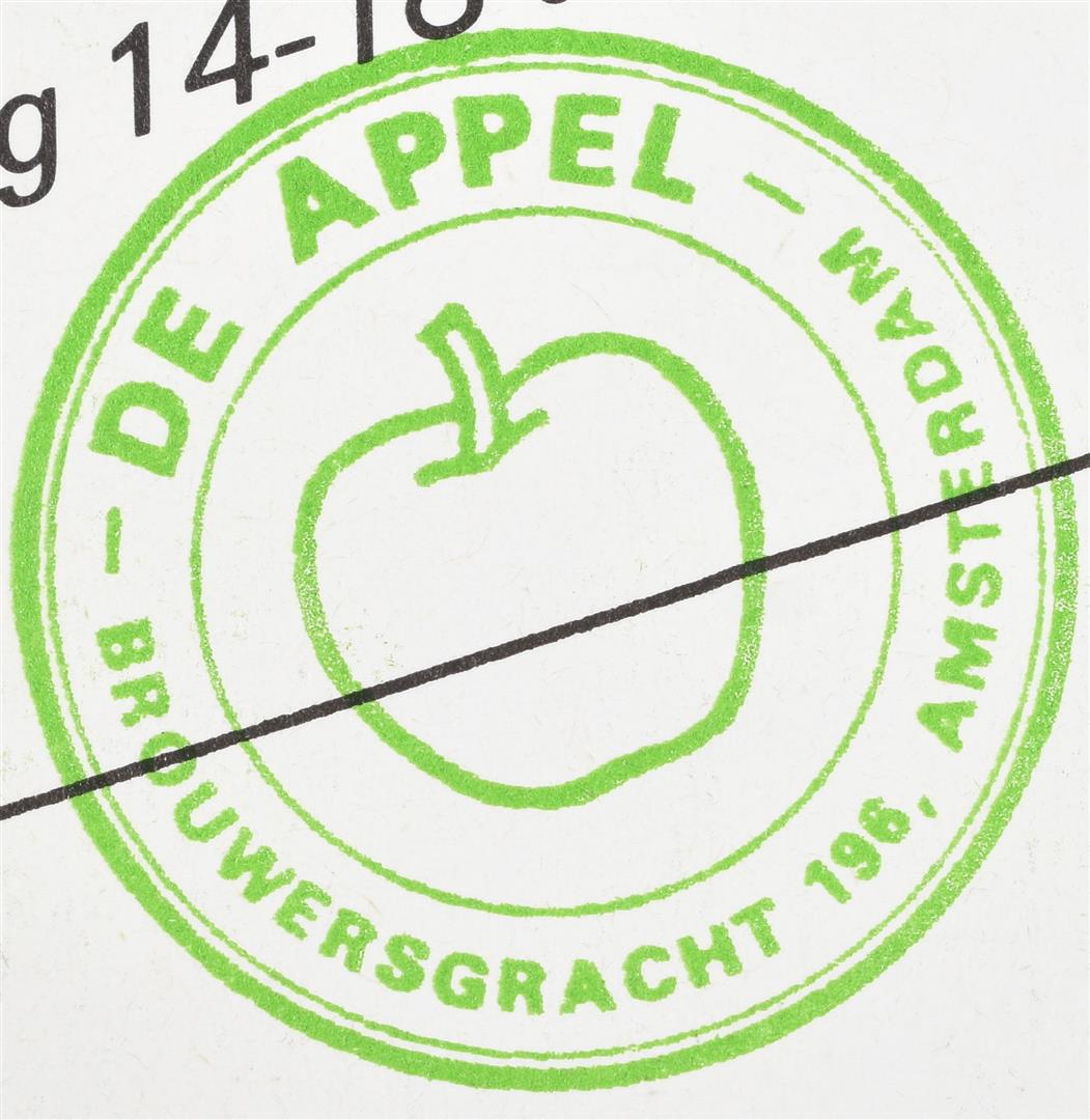 Launch poster published by De Appel Amsterdam, 1979. Colour printed double sided, 42 x 30 cm, folded once as issued. Recto shows an image from the video ‘Test Tube’ and De Appel's logo. Verso features information on the production and screening of the work. Text in English and Dutch.