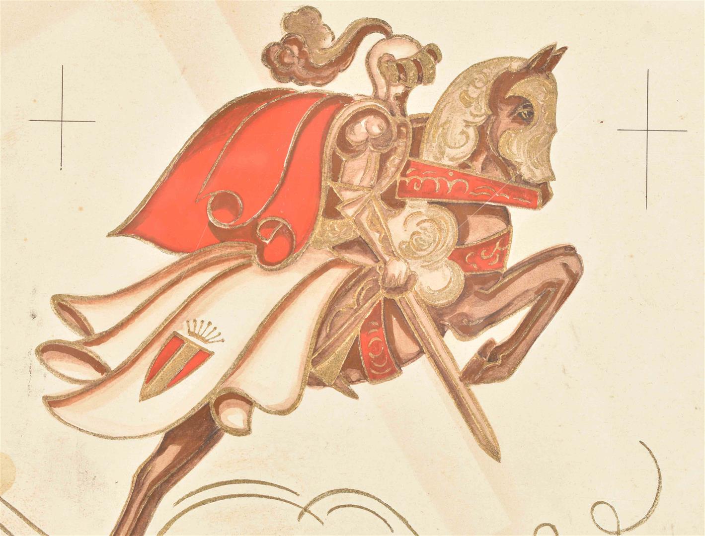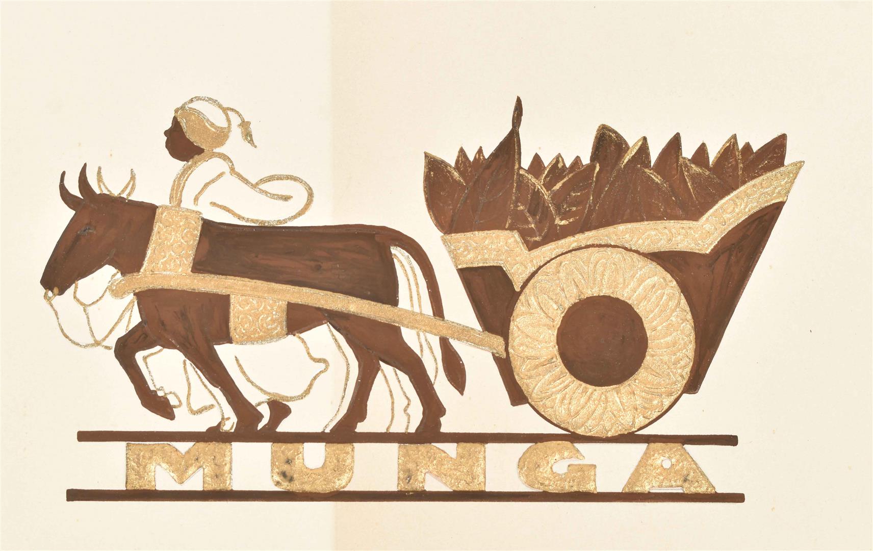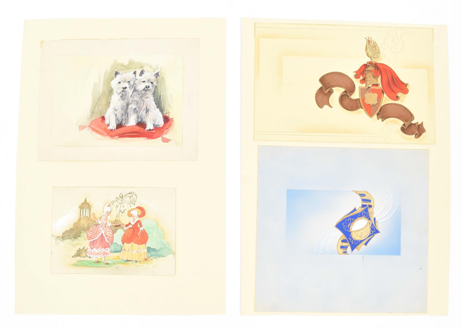 (1) "Golden Horn assorted bisquits". Design in gouache and collage, for the cover of a box for Golden Horn, Dordrecht, ca. 1950, total size 22 x 39.5 cm. (2) "Nuwenhuis Biscuits". Fold. design in gouache for the cover of a box for N.V. Bisquitfabriek A. Nuwenhuis, Haarlem, ca. 1950, total size 27 x 19 cm, mounted at upper margin. (3) "Holland folklore". Original design in gouache on board, ca. 1950, total size 18 x 22 cm (incl. borders w. annotations in pencil. Very fine, brightly coloured design.