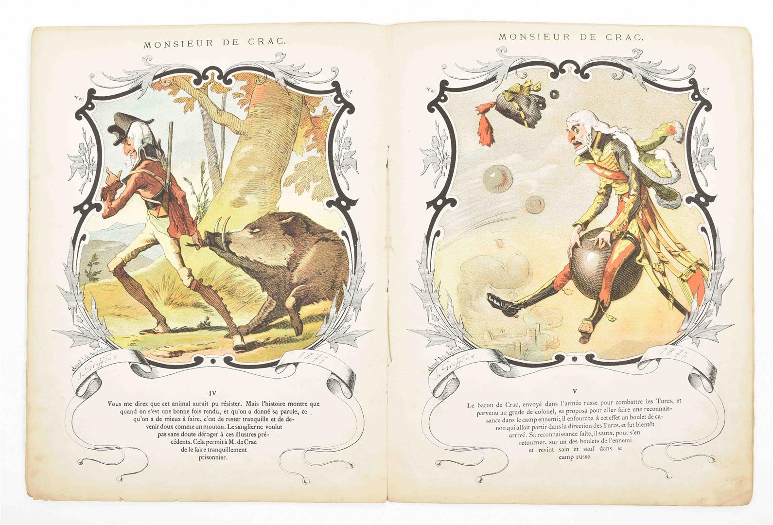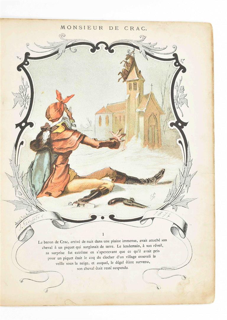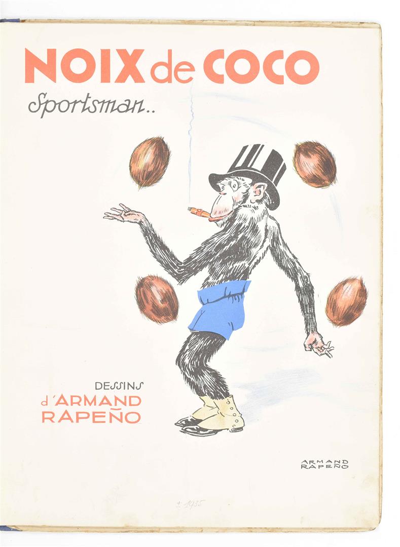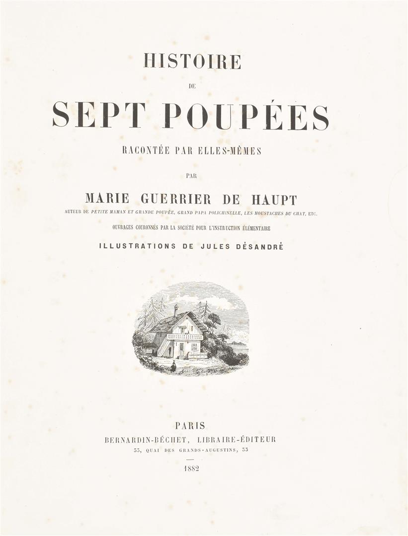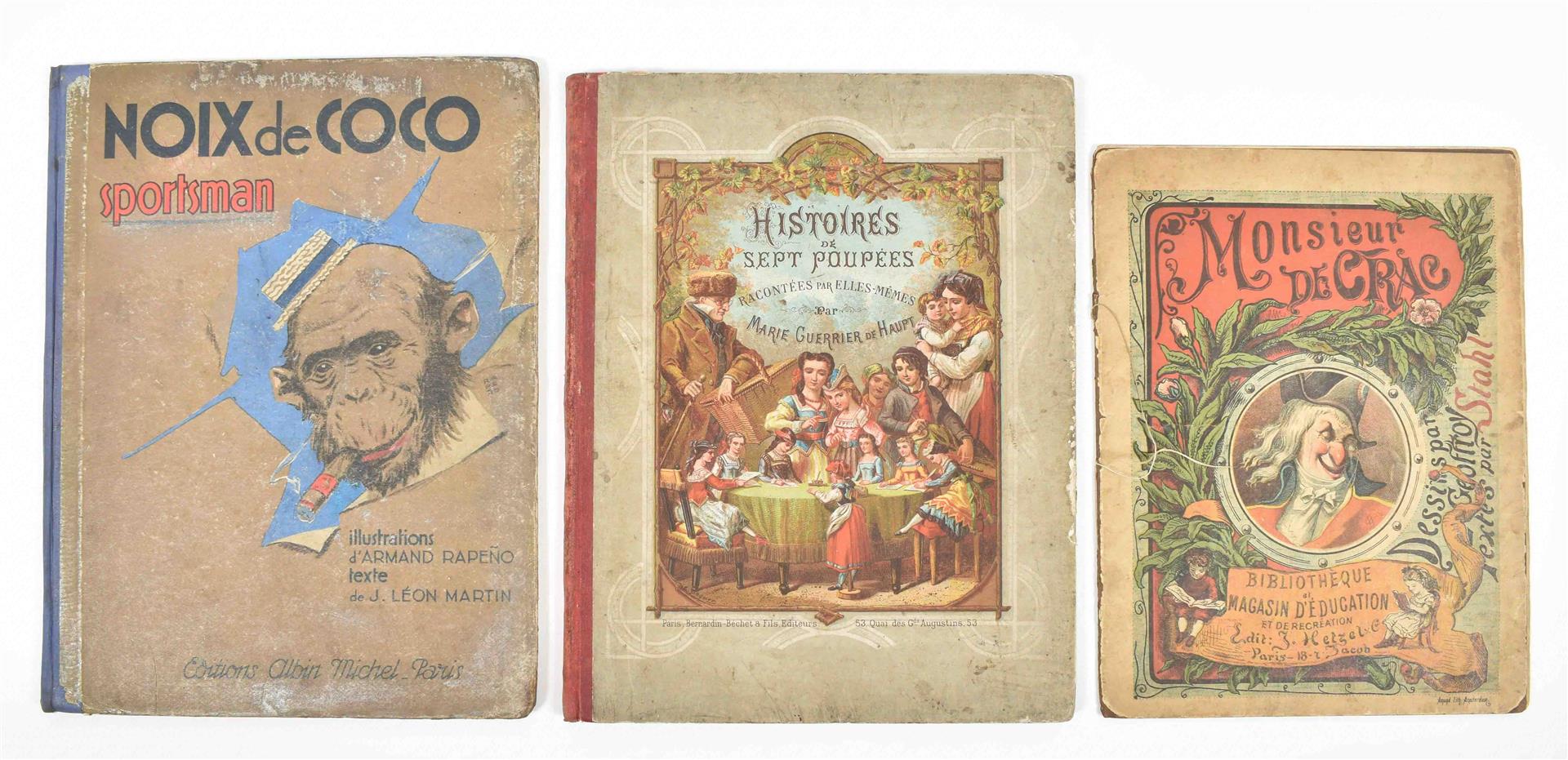 Ill. by Geoffroy. Paris, Hetzel, 1878. VIII lvs., all. w. large col. lithogr. illustration by Geoffroy. Orig. ill. wr. 4to. Worn copy. (2) Marie Guerrier de Haupt. Histoires de Sept Poupées. Paris, Bernardin-Béchet, 1869. Full-p. col. lithogr. Orig. clothbacked pictorial boards. 4to. (3) J. Léon Martin. Noix de Coco sportsman. Ill. Armand Rapeño. Paris, Albin Michel, ca. 1930s.