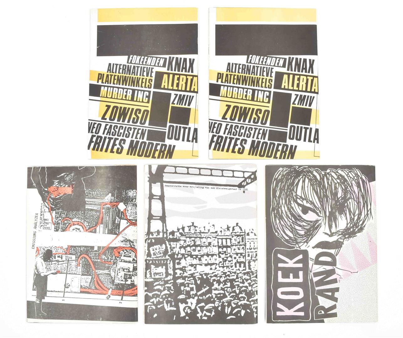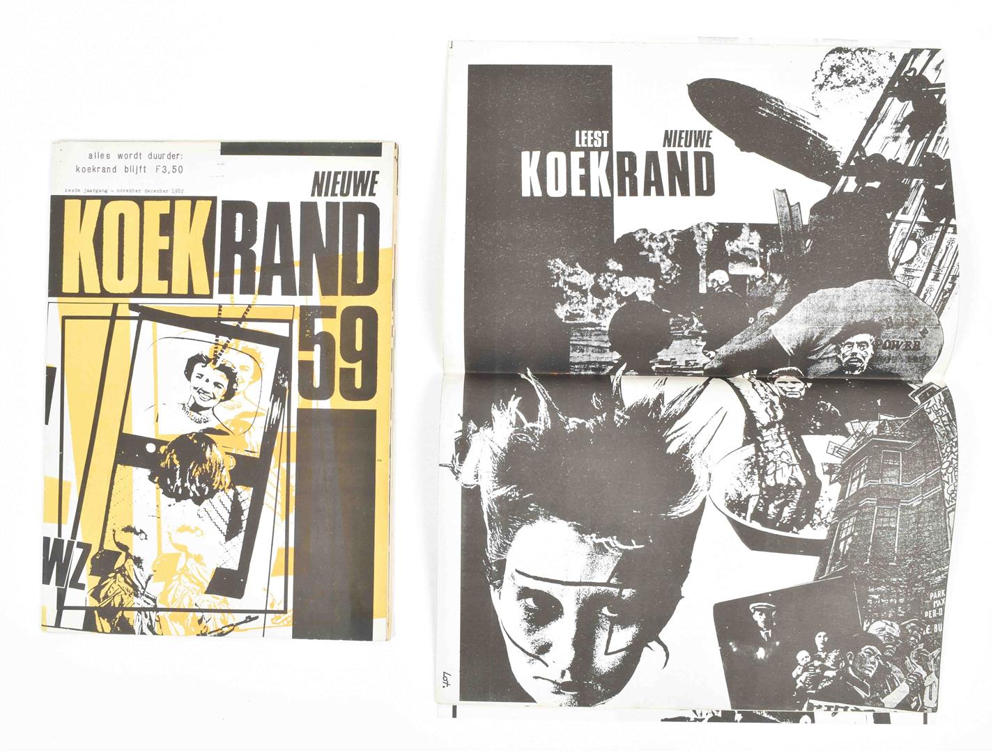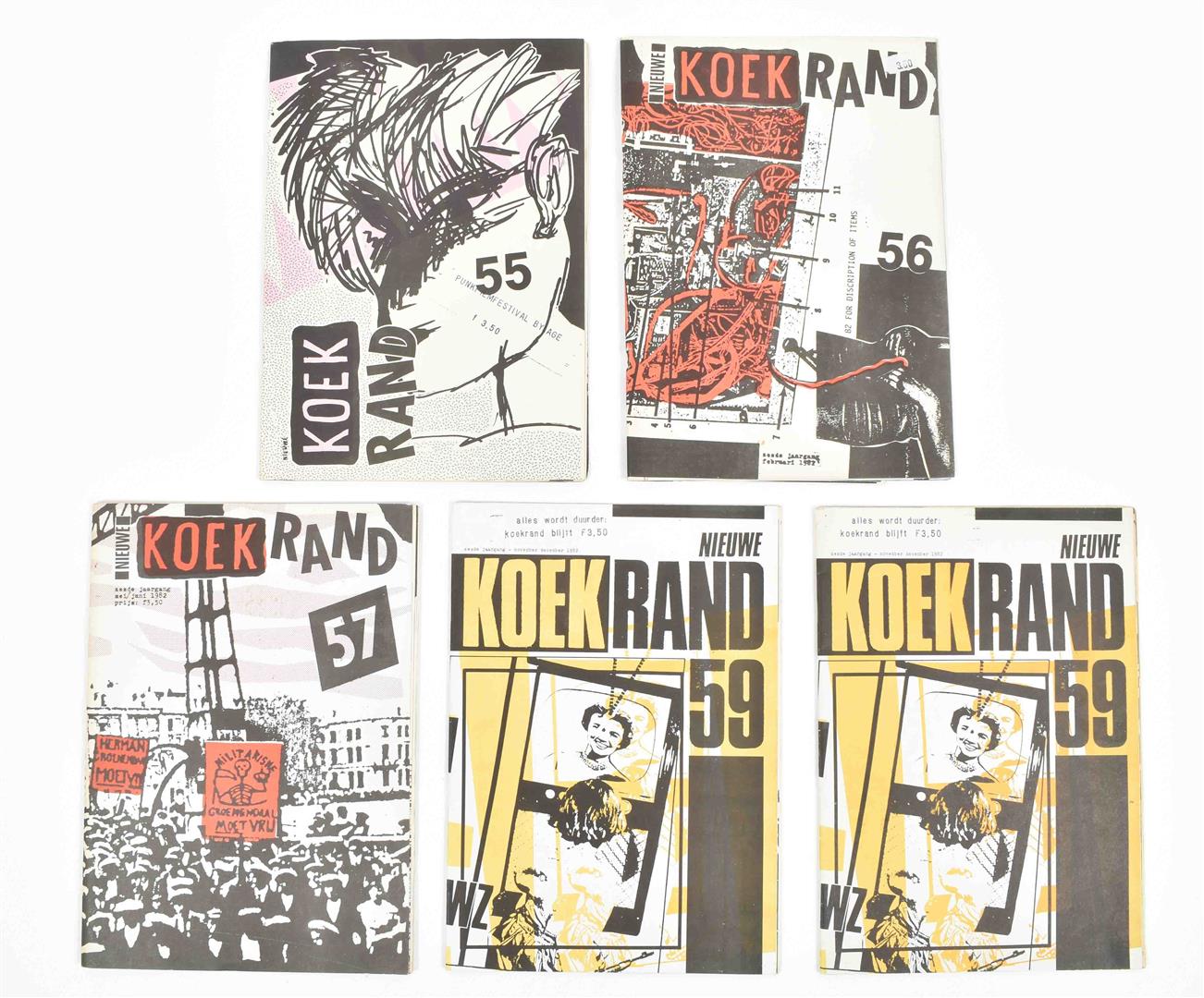(Koecrandt, Coekrandt, Koekkrant, Koekrand or Coekrant). Johan van Leeuwen, Diana Ozon, Hugo Kaagman, Dr. Rat. Amst.-based punk magazine. (1) Nos. 55 (1981), 40 p., incl. supplement "Punk Film Festival", 20 p. (2) No. 56 (1981 or 82), 40 p., incl. insert "Consert Afgenda". (3) No. 57, 1982, 52 p., incl. insert "Trekpop van de staat". (4) No. 59, 1982, 2 copies. All w. orig. col. covers.