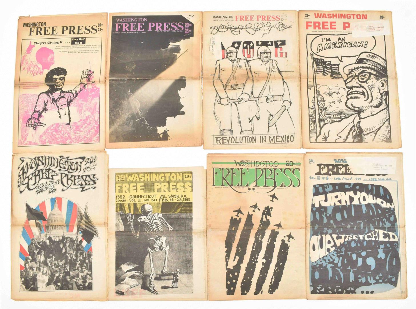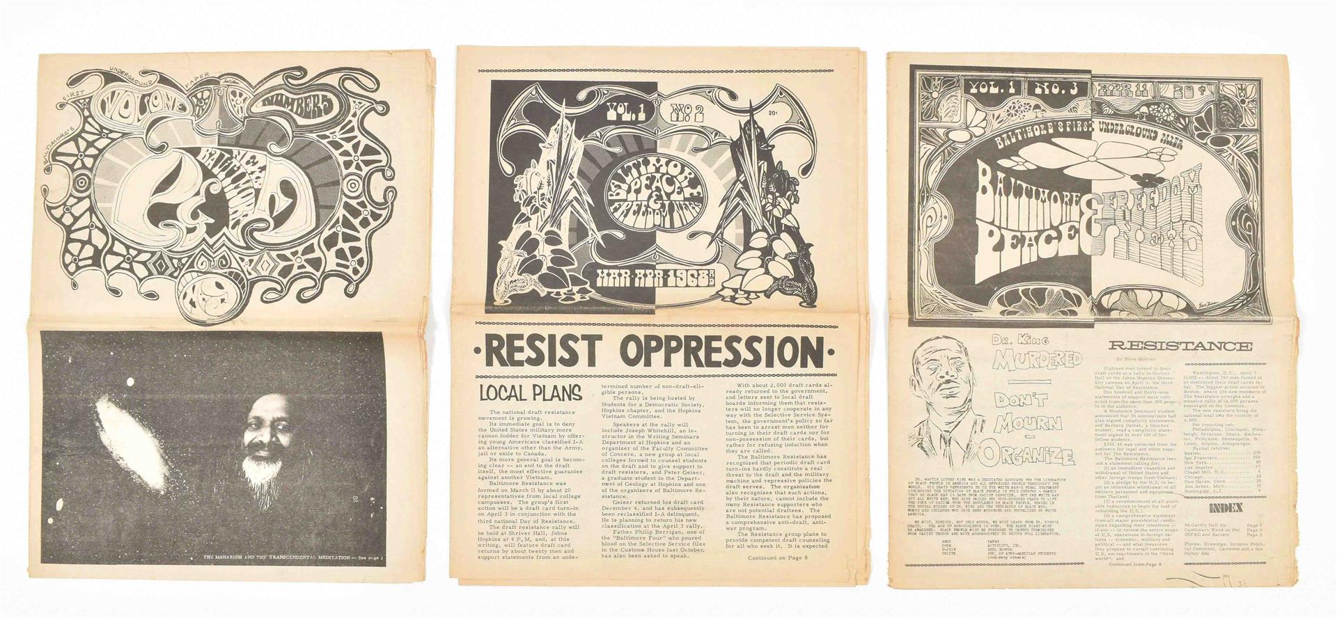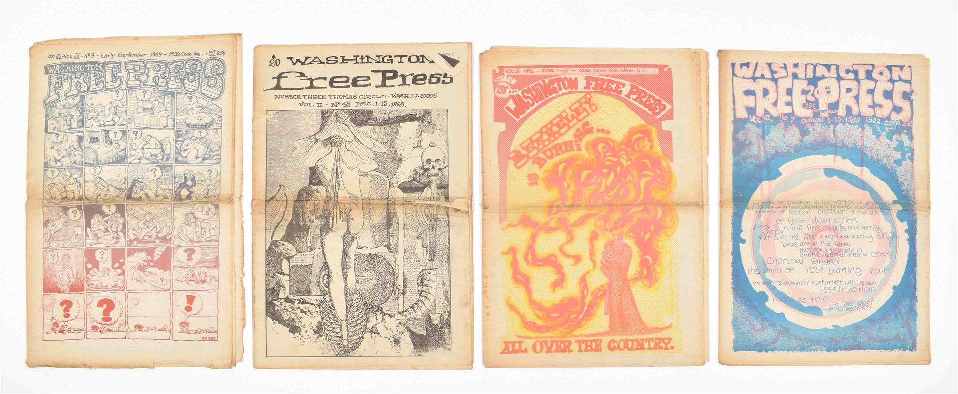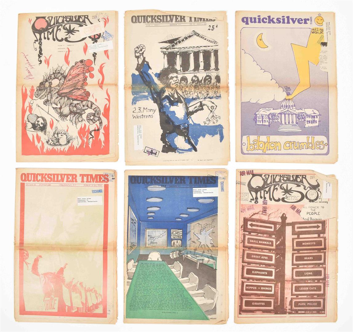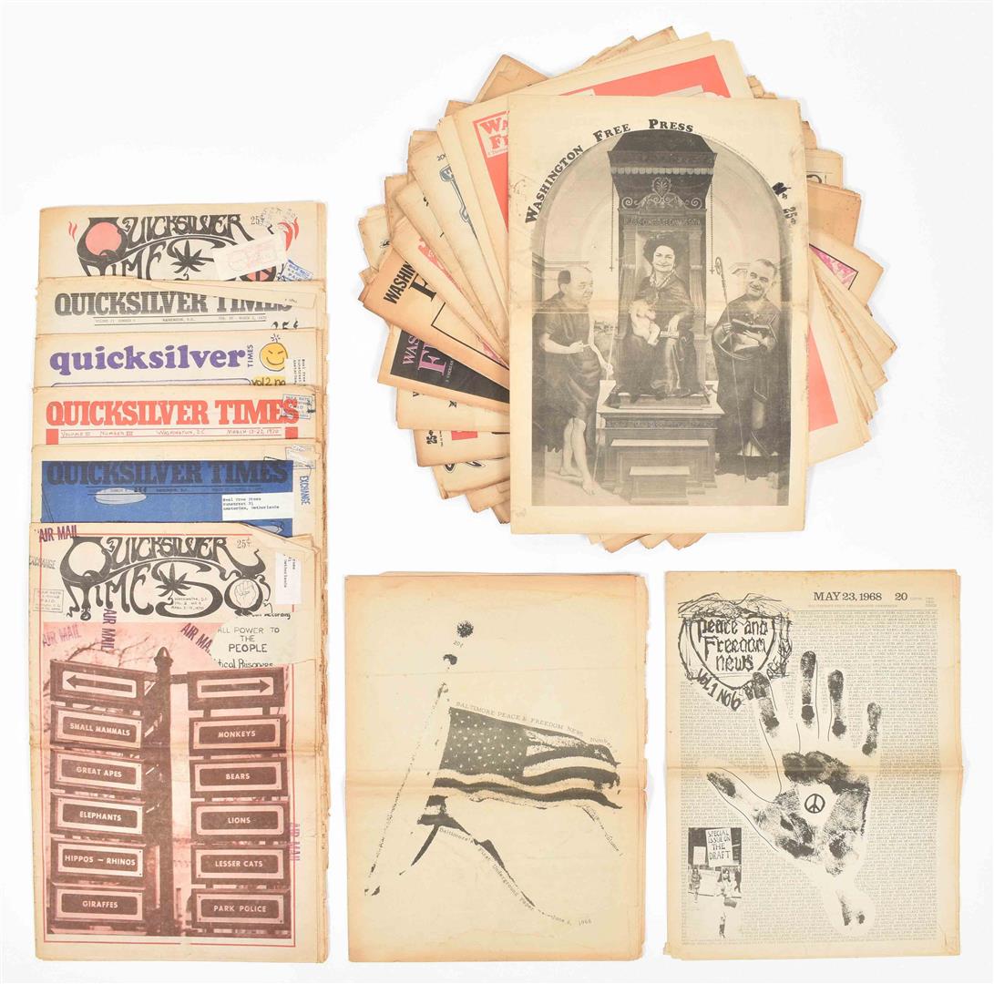 (1) Washington Free Press. 16 issues publ. from 1967-69. Some partially printed in col. Important underground newspaper publ. by the Washington Free Community. (2) Quicksilver Times. 6 issues, 1970s. (3) Baltimore Peace and Freedom News. 3 issues, 1960s.