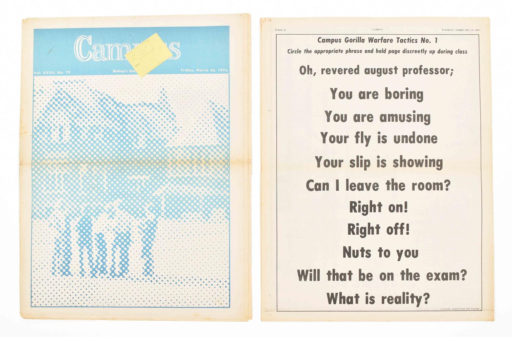 Bishop's University, Lennoxville, Quebec. 86 issues, 1970s. Added: Hundred Flowers. North Country. Minneapolis, Minnesota. 45 issues, 1970s.