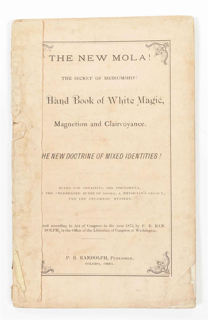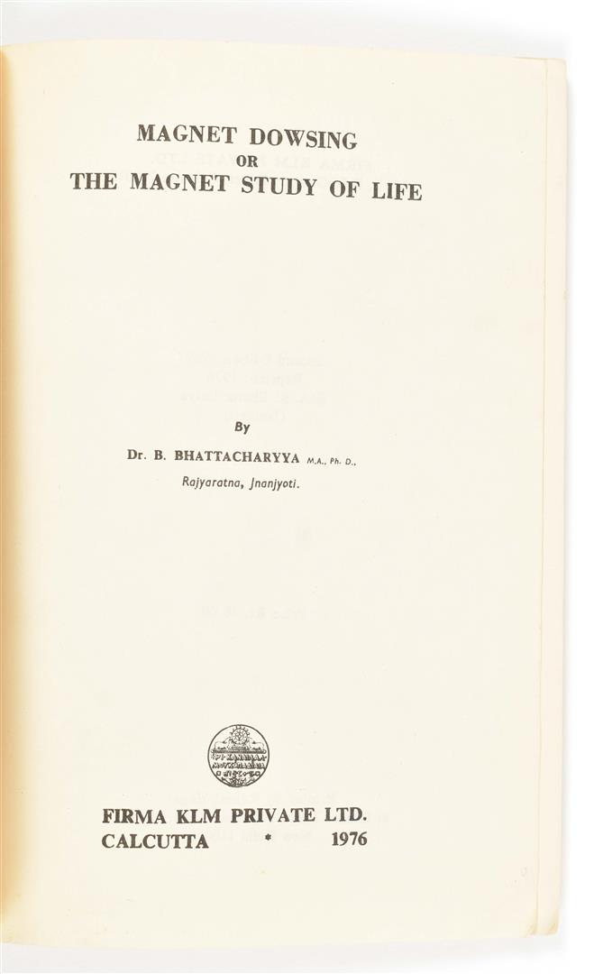 (West Nyack, Parker Publ. Co., 1976). 201 p. Sc. (2) Douglas M. Baker. The Occult Significance of UFOs. N.pl., n.publ., 1979. 108 p. Ill. sc. (3) B. Bhattacharyya. Magnet Dowsing or the Magnet Study of Life. Calcutta, Firma KLM, 1976. (4) The New MOLA! The Secret of Mediumship! Hand Book of White Magic, Magnetism and Clairvoyance. Toledo, P.B. Randolph, (1873). 63 p. Sc. -and 6 others.