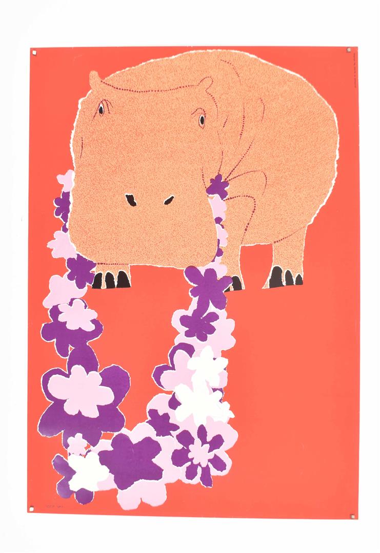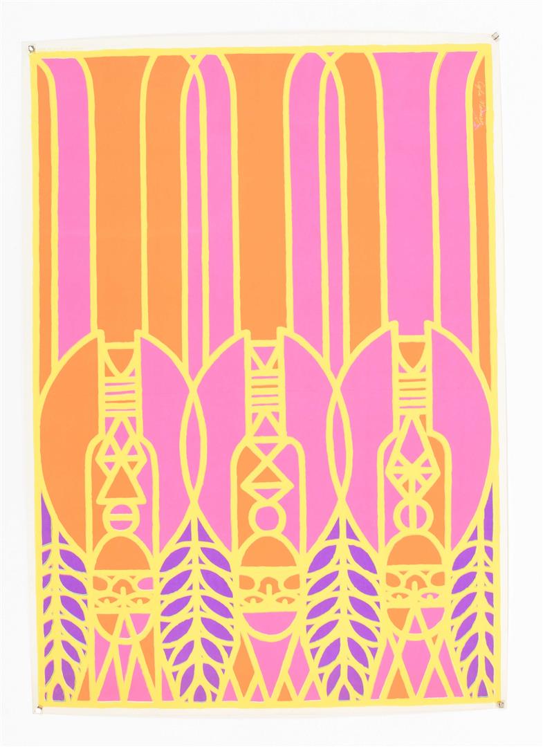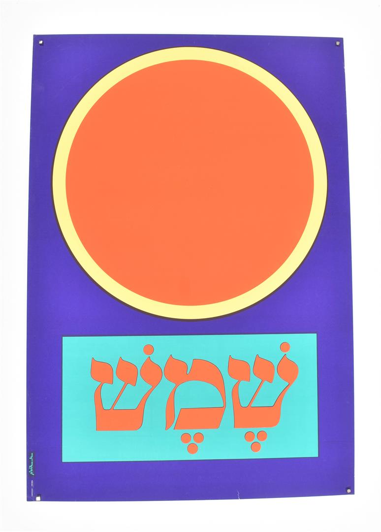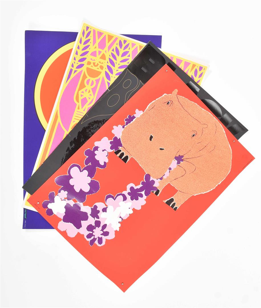 Silkscreen prints, ca. 1968-70. (1) Cyla Menusy. Untitled. (2) Unknown. Black Beautiful. (3) 'Hippopotamus'. (4) Shemesh (transl. sun). All 67 x 48 cm.