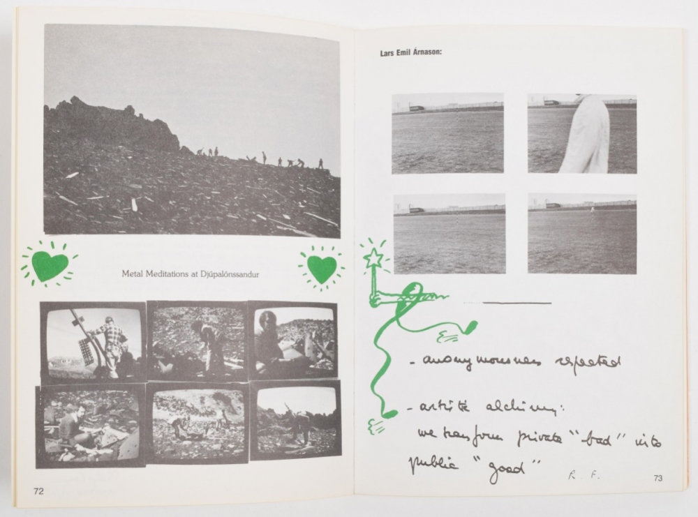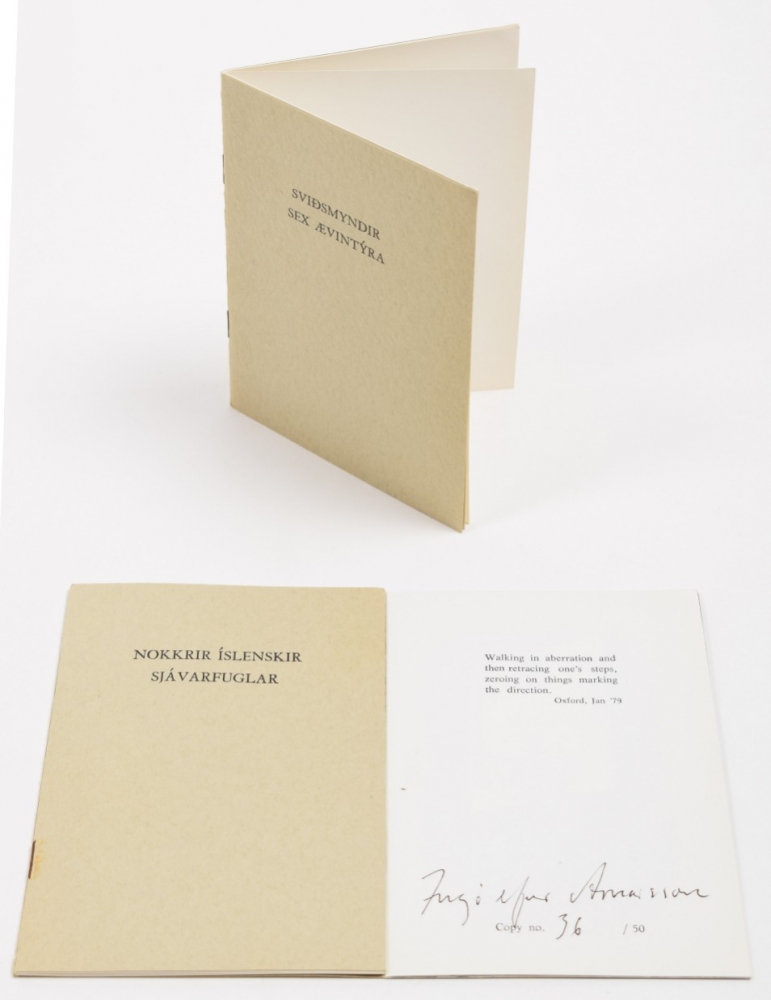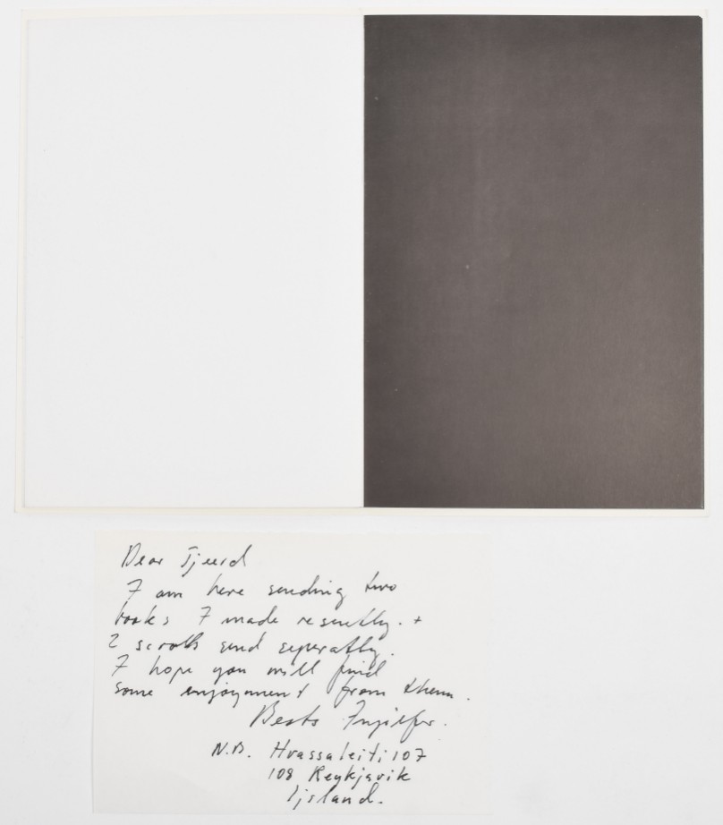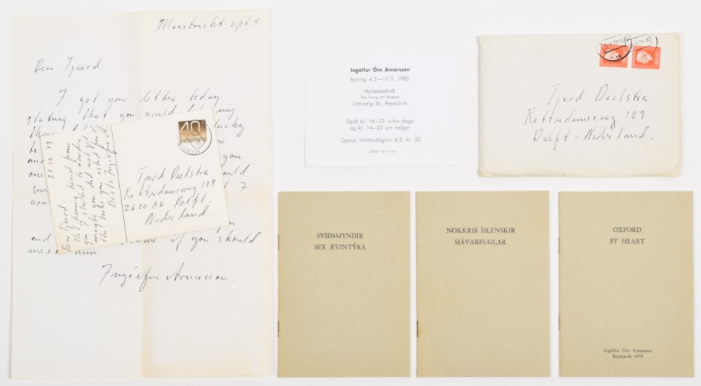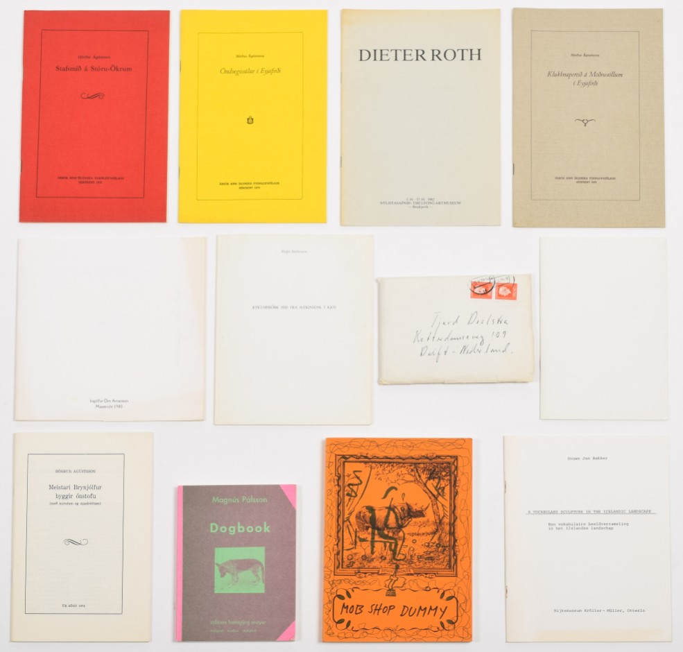 + Douwe Jan Bakker, a vocabulary sculpture in the Icelandic landscape, 1978 + Birgir Andresson, Eyktarmörk se? frá Haekinsdal í Kjós, 1979 + 5 signed artists' books by Ingolfur Orn Arnarsson, 1979. Includes personal notes from the artist to Tjeerd Deelstra + 4 booklets by Hordur Agustsson, 1973/1974. (total 14)
