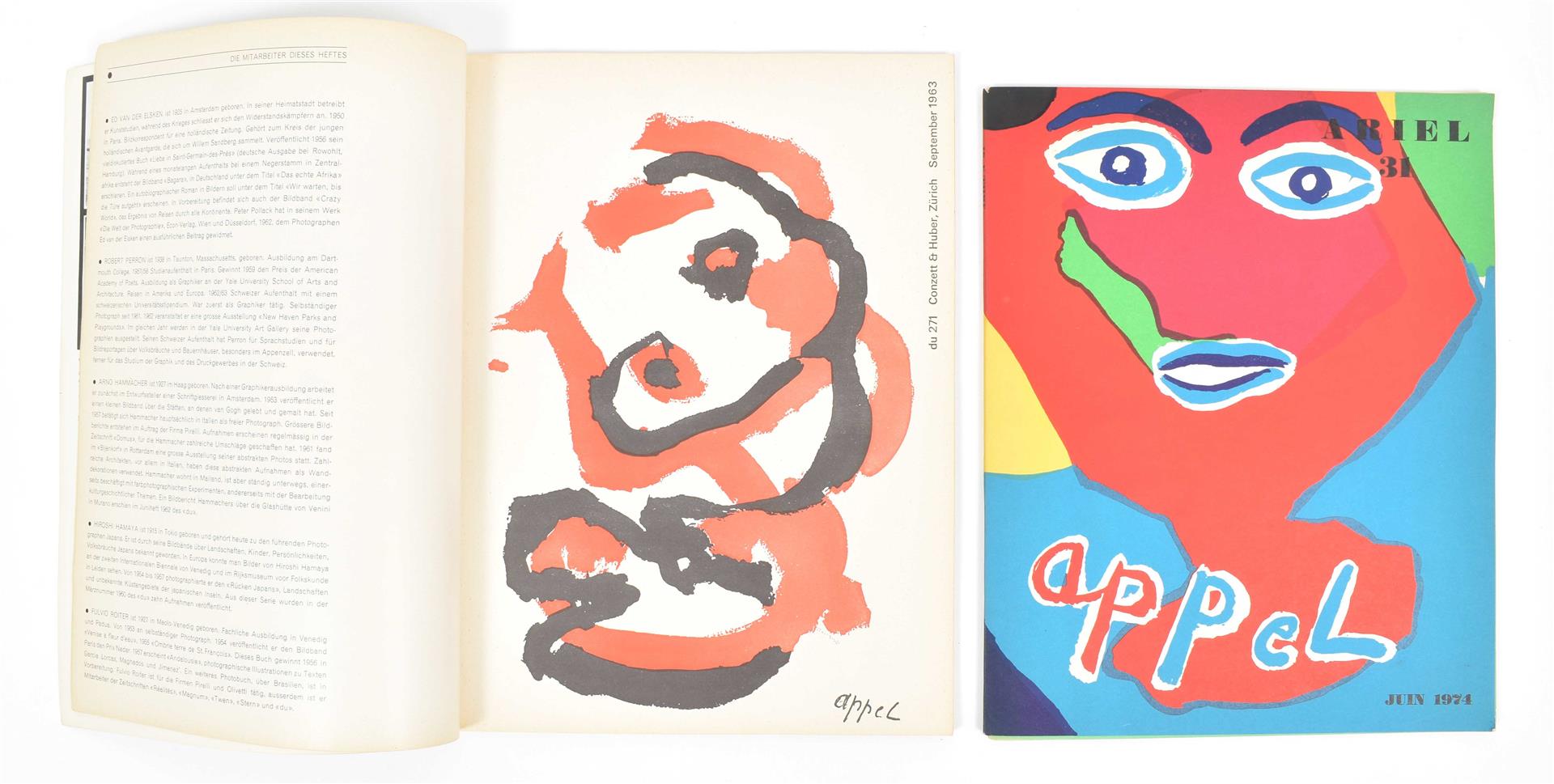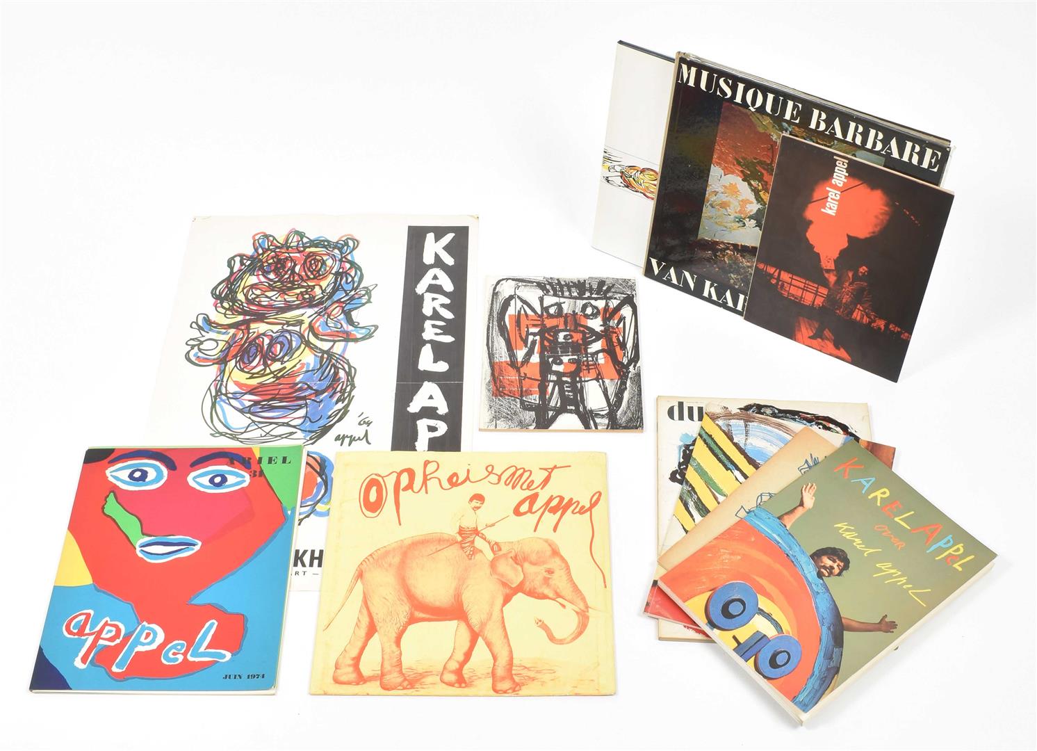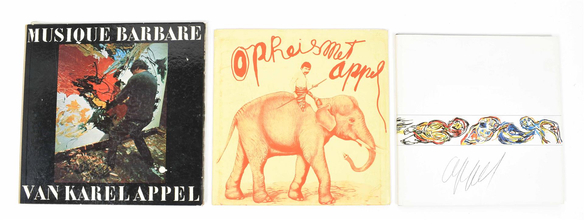Paris, Galerie Ariel, June 1974. Lithogr. double-p. covers and double-p. lithogr. Signed by Appel on inner front cover. (2) Musique Barbare. Philips 999954 DL, Mono, 1963. In gatefold record sleeve w. 30 p. book, text by Jan Vrijman, photography Ed van der Elsken. (3) Vijftien keer Karel Appel. Poster, Galerie Krikhaar 1964. 58 x 38 cm.