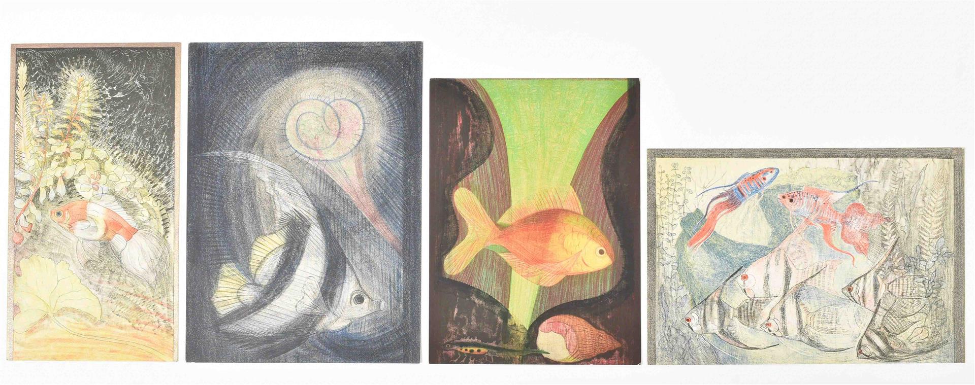 Ca. 1930s (?). Var. sizes, most approx. 27 x 19 cm, all coloured. Lovely depictions of fish, birds and other animals.