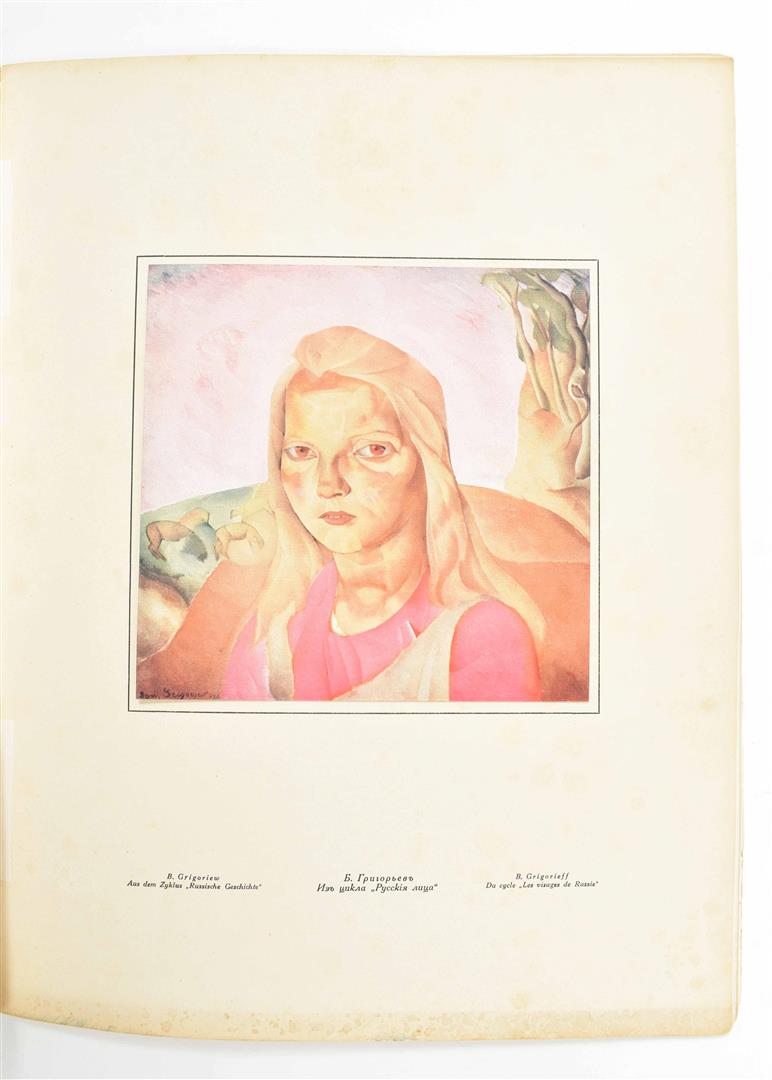 No. 2, 1921 and nos. 6 and 9, 1922. Berlin, A. Kogan "Russische Kunst", 1921-22, 3 vols. of the series, w. tipped-in col. plates after and num. (full-p.) ills. after a.o. S. Sorin, A. Jakowlew, B. Grigoriew, J. Bilibin, B. Kustodiew, W. Schuchajew and L. Bakst, num. advertisements, orig. wr. after Bilibin, L. Brailowsky and B. Kustodiew, folio.