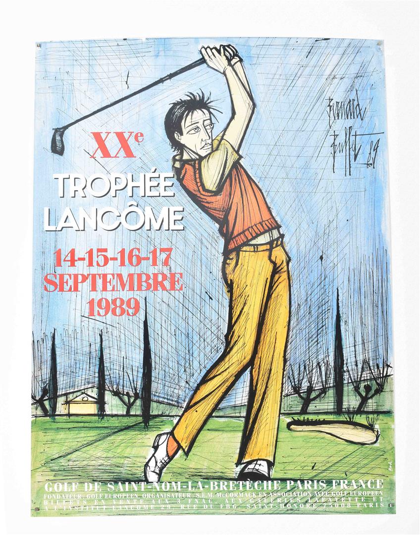 Golf de Saint-Nom-La-Bretèche Paris France. Lithogr., 1989, 74.5 x 55 cm. Added: Two Galerie Maurice Garnier posters, both for exhibitions on Bernard Buffet, 1985 and 1986. Lithogr. One framed and mounted on cardboard backing, 69 x 50 cm; the other 75 x 55 cm.