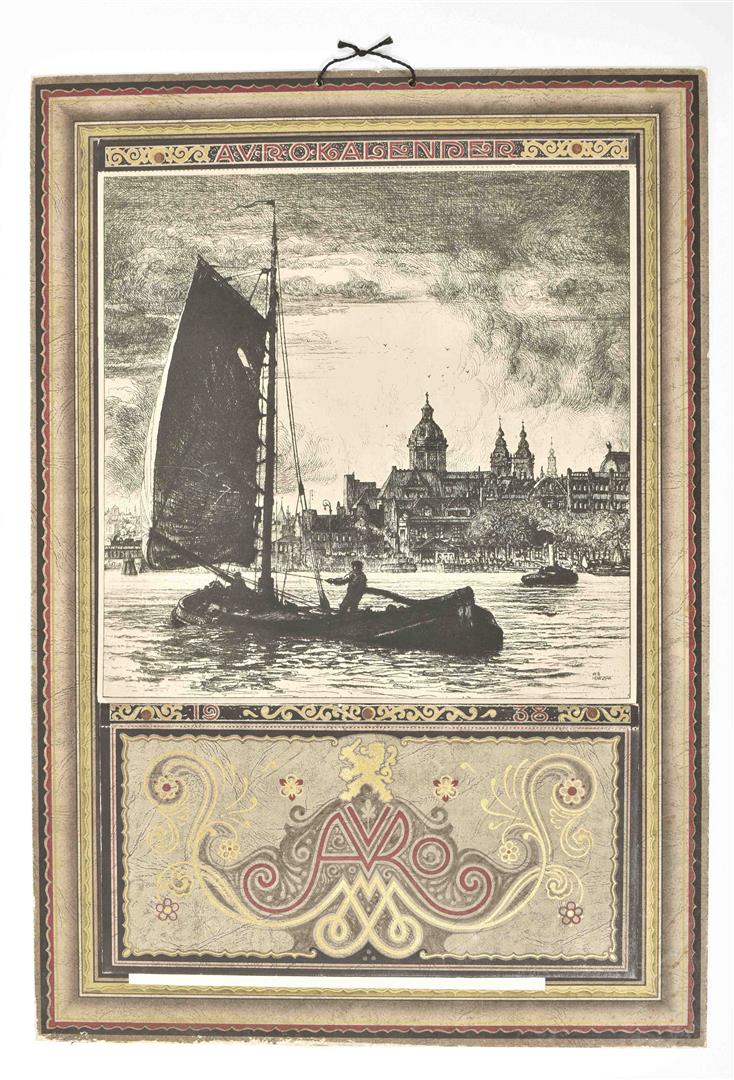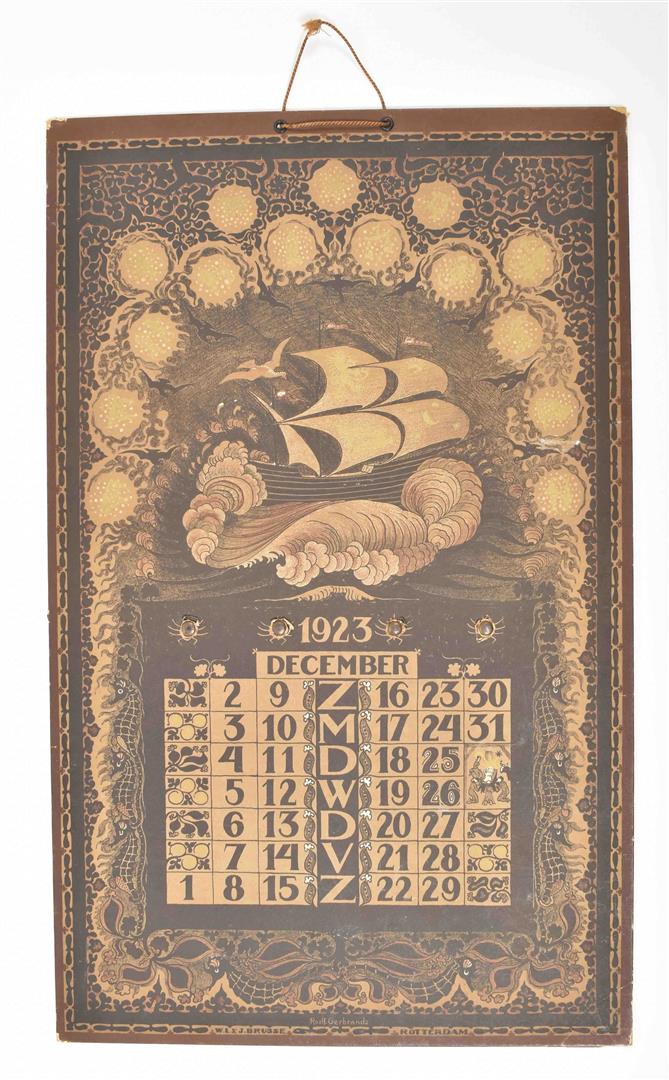 "Ontwerp litho en proefdruk door J. van Essen onder leiding van J.B. Heukelom". Lithogr. mounted on cardboard. 42 x 21 cm. (2) Gerbrands, R. Calendar December 1923. Rott., Brusse. Lithogr. on cardboard. 46 x 29 cm. (3) Hemelman, A. AVRO Kalender 1938. W. lithogr. reproductions after a.o. A. van 't Hoff, F. Bobeldijk, W. van den Berg, I. van Mens, W.G. Hofker. 52 x 36 cm. -and 3 more.