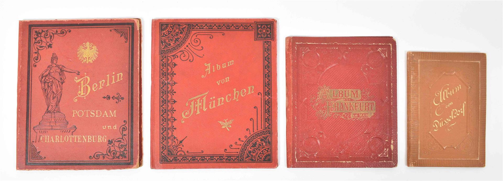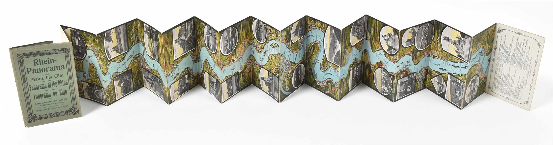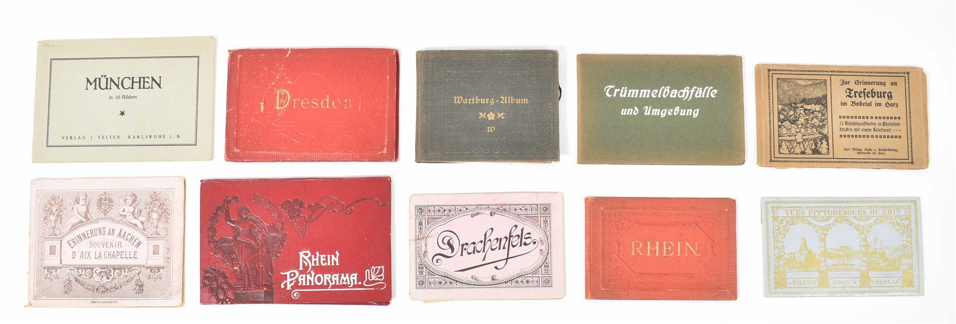 Early 20th cent. (?). Incl. a.o.: (1) Five booklets on the Rhine river, incl. one w. a leporello map of the river. (2) Leporello photographic booklet of Cleve. (3) Souvenir booklets on Dresden, Aachen, Berlin, Düsseldorf and Frankfort, a.o. Added: 2 souvenir booklets on Austria.