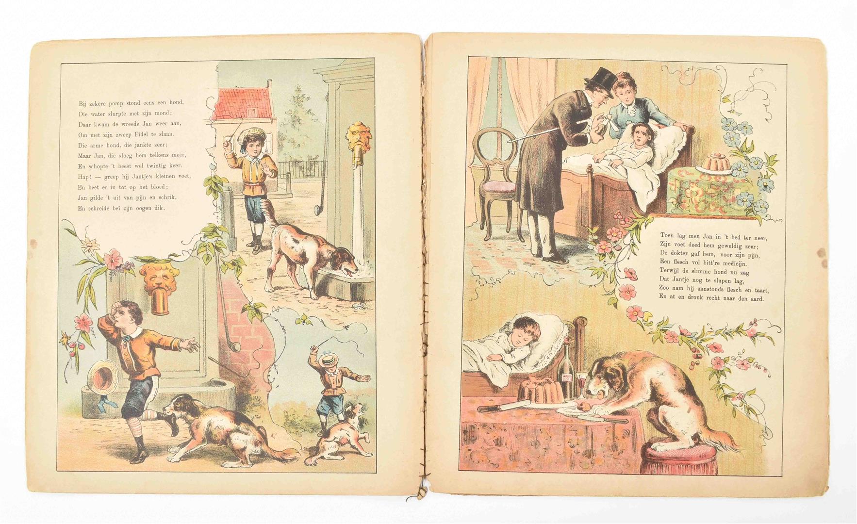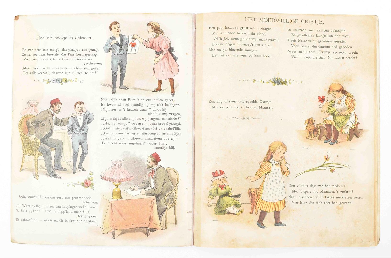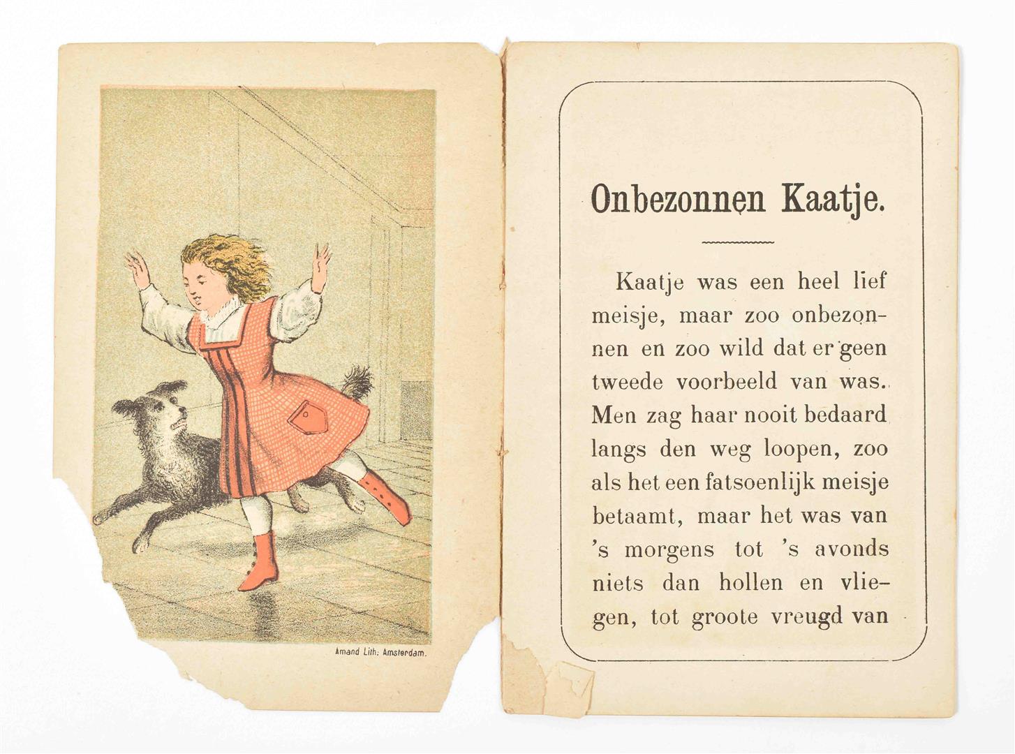 Vrij bewerkt naar Dr. J. Lütje's "Struwwel Liese". Alkmaar, Kluitman, (1896). (2) Cl. handkerchief, 28 x 30 cm, dec. w. Struwwelpeter images. (3) Onbezonnen Kaatje. Amst., J. Vlieger, (1883). Worn copy. (4) Piet de smeerpoets. Ibid., idem, ca. 1880. Worn copy. -and 2 other Struwwelpeter stories publ. by Vlieger. -and 1 other.