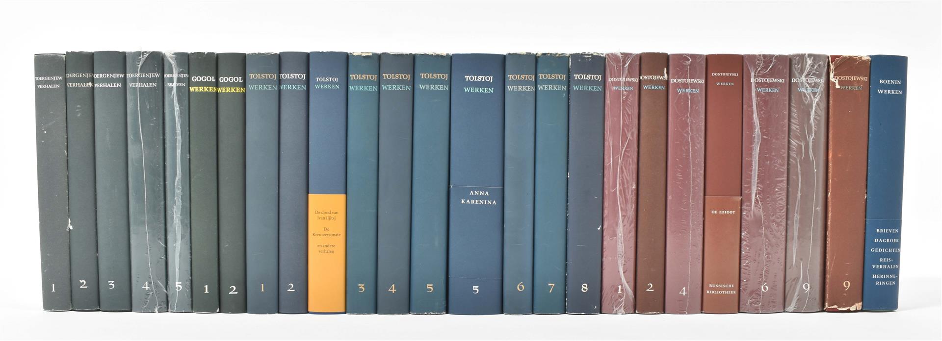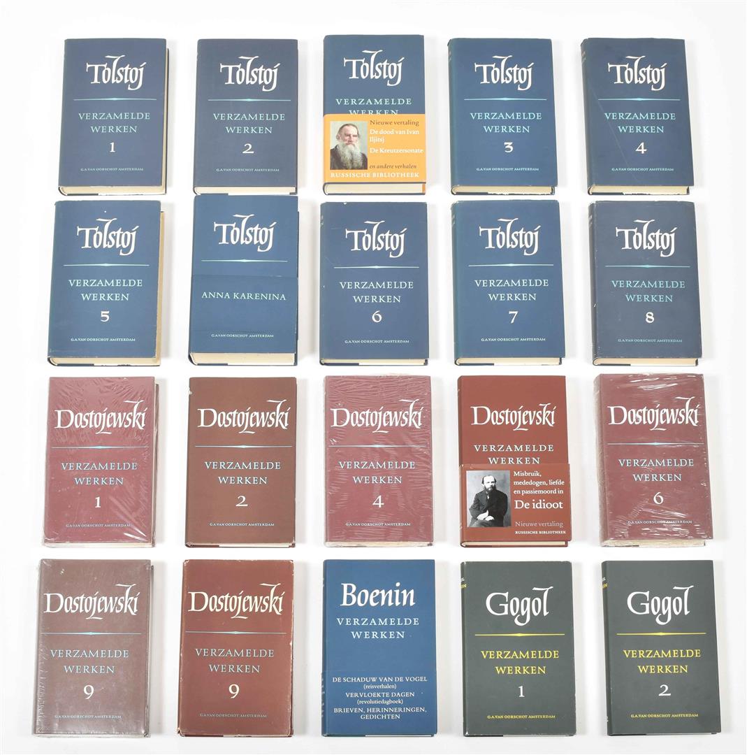 Amst., Oorschot, 1967-2015. 10 vols. All cl. w. dust-j., some w. belly band. (2) Dostoevsky, F. Verzamelde werken. Ibid., idem, 1978-2013. 7 vols. All cl. w. dust-j., 1 w. belly band, some still shrink wrapped. (3) Turgenev, I.S. Verzamelde werken. Ibid., idem, 1955-78. 5 vols. All cl. w. dust-j., some still shrink wrapped. -and 3 others also publ. by Oorschot.