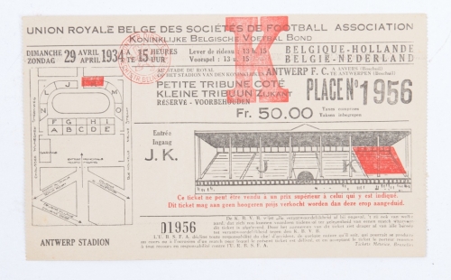 [Football] Entrance ticket Belgium-The Netherlands 1934