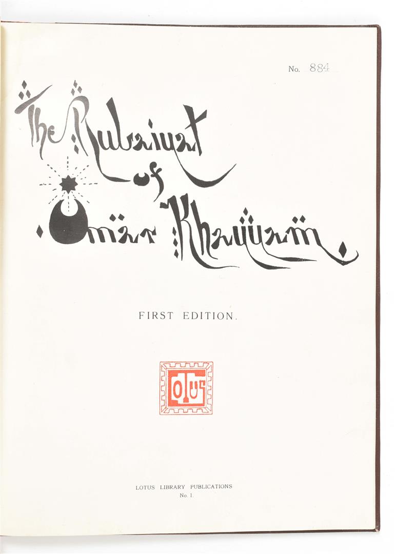 Transl. by Edward FitzGerald. Singapore, Lotus Library/ Fraser & Neave, ca. 1918. 1st ed. No. 884 (of 1,000?). B/w full-p. ills., possibly by W.G. Stirling (1887–1951). Later private binding. 4to.