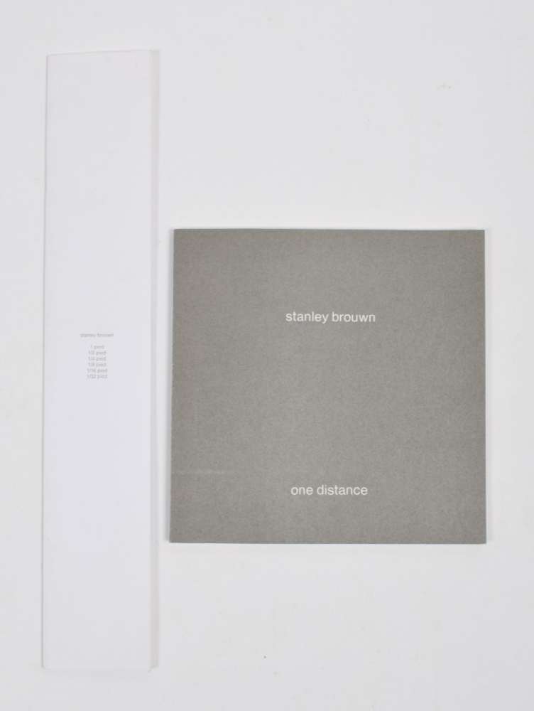 Stanley Brouwn, One distance. Eindhoven, Van Abbemuseum, 1981. Softcover, 20 x 20 cm. 64 pp. Edition of 1000 copies. + Stanley Brouwn, 1 pied, 1/2 pied, 1/4 pied, 1/8 pied, 1/16 pied, 1/32 pied. Nice, Villa Arson Centre National des Arts Plastiques, 1995. Wrappers, 40 x 7 cm, 16 pp. Both books have slight creasing, else good.