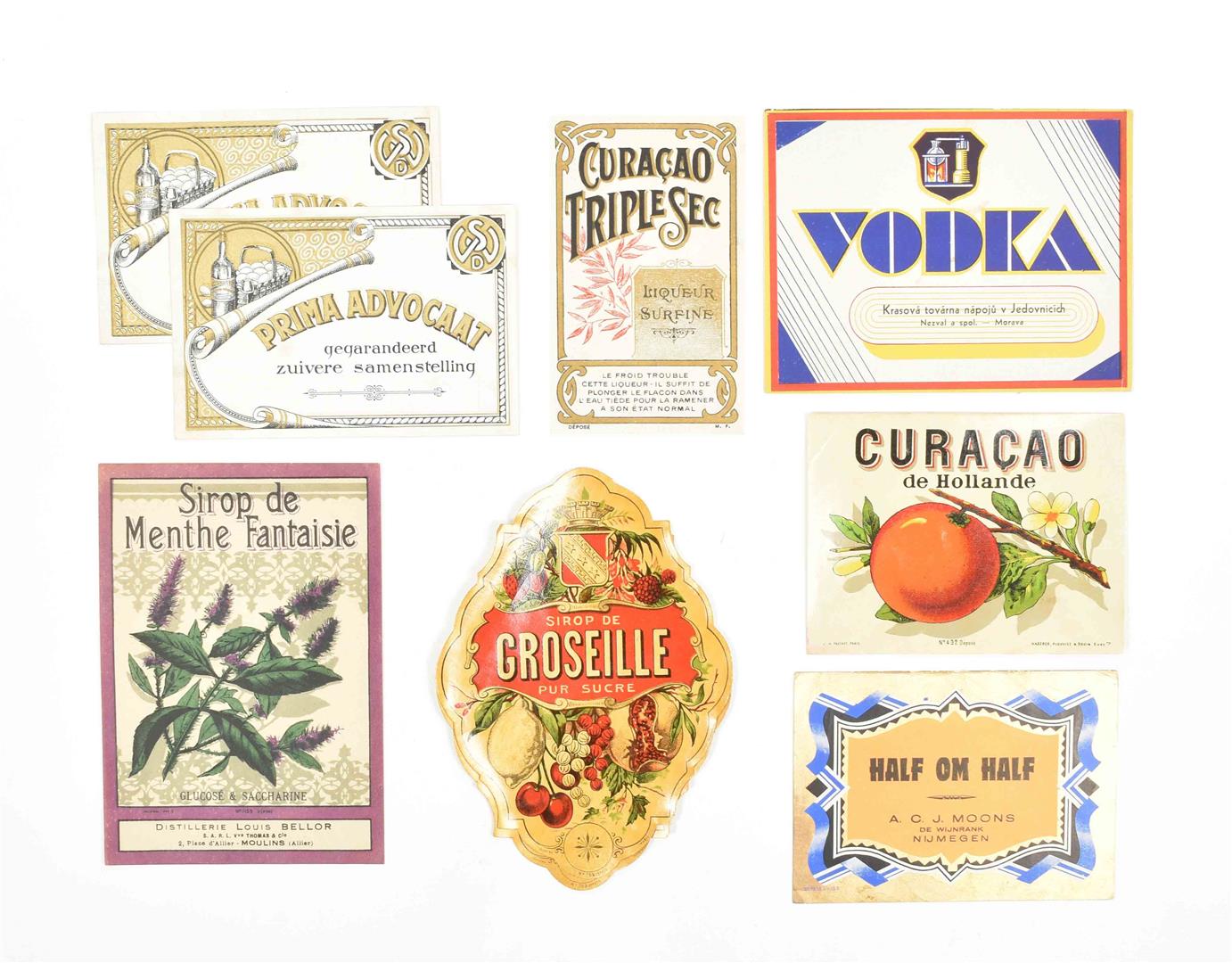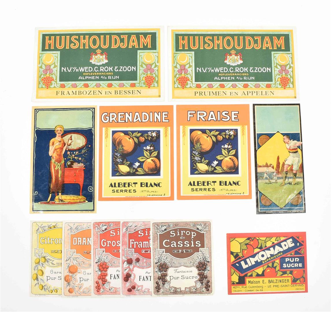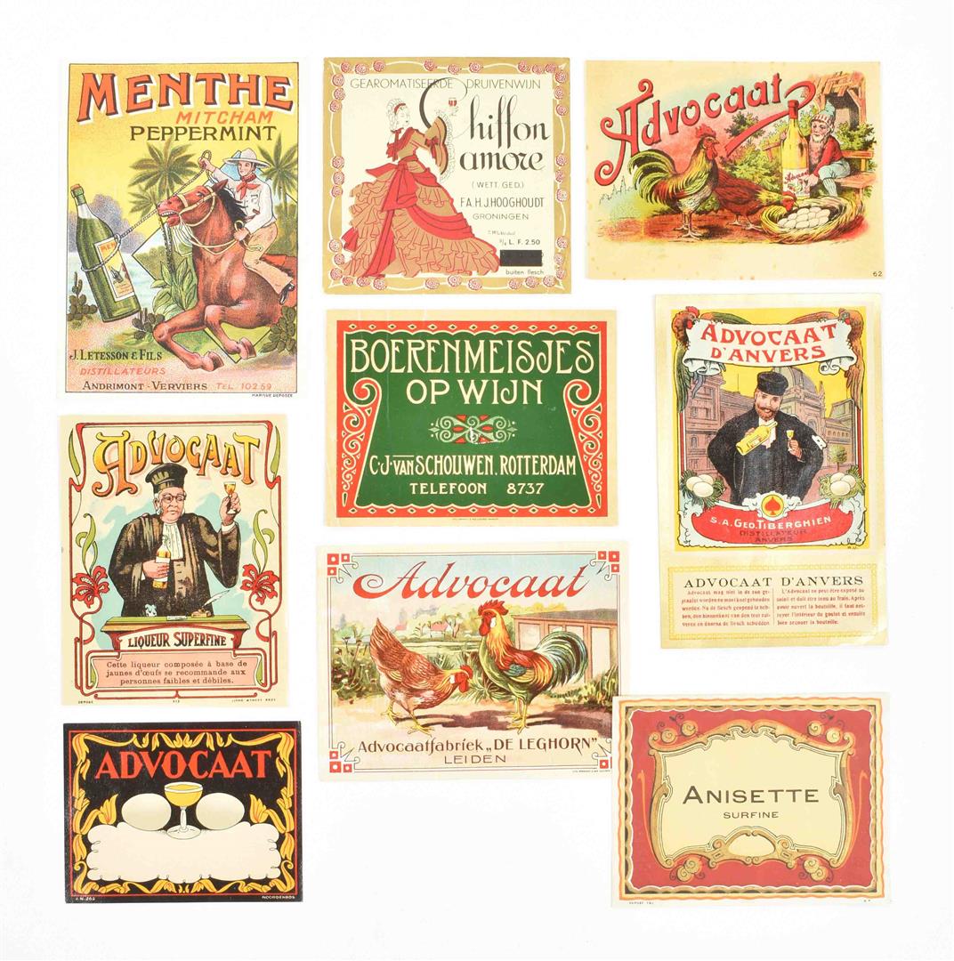 Mostly Dutch or French language, ca. 1900-60, var. techniques (incl. many chromolithographs). The colourful collection comprises a number of notable art deco designs, several designs are signed Noordenbos in the technique. Added: A similar collection of approx. 300 labels for alcoholic beverages, like the first containing striking art deco designs, some also signed Noordeloos in the technique.